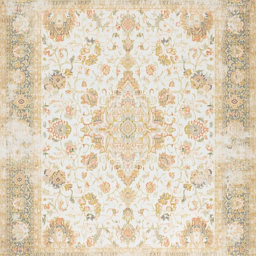 Stylish Square Area with Timeless Floral Motifs in Warm Cream Tones(Beige)