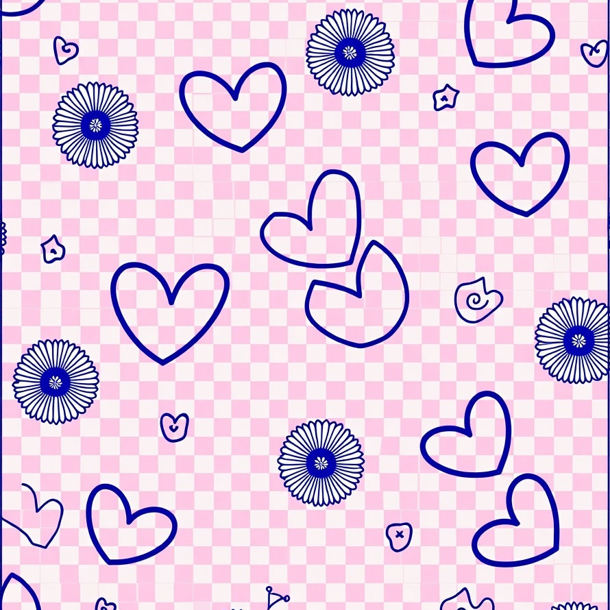 Preppy Checkered Design with Playful Daisies and Contrasting Outlines (Pink)