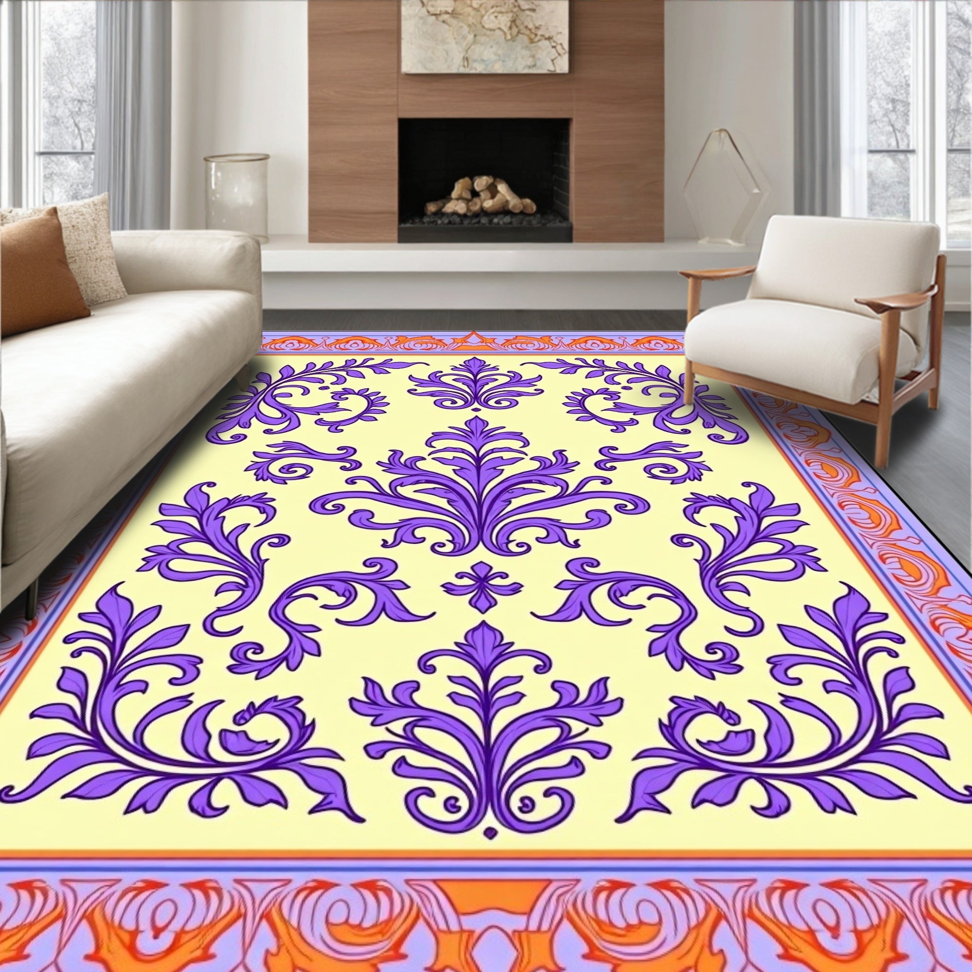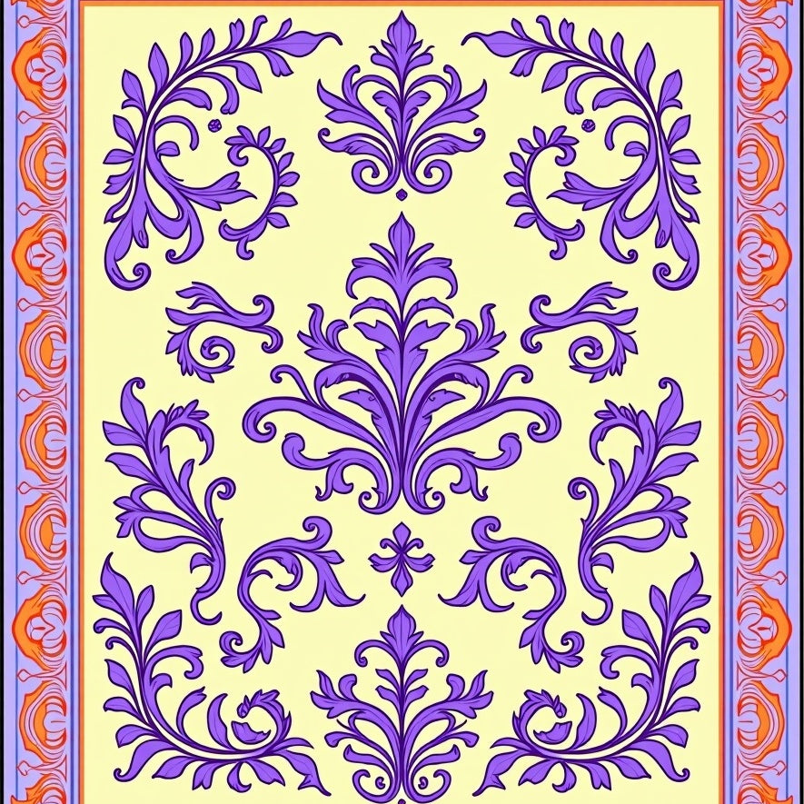 Damask Scrollwork Design with Ornate Victorian(Yellow)