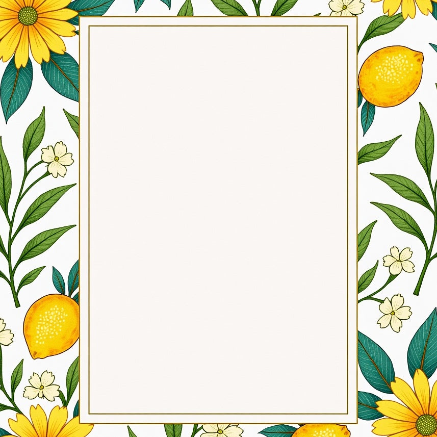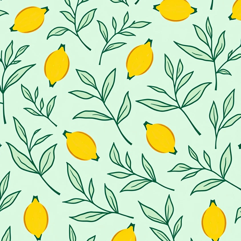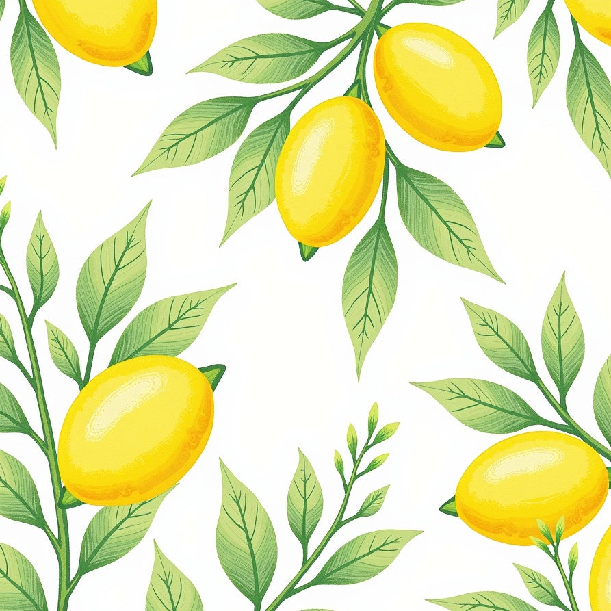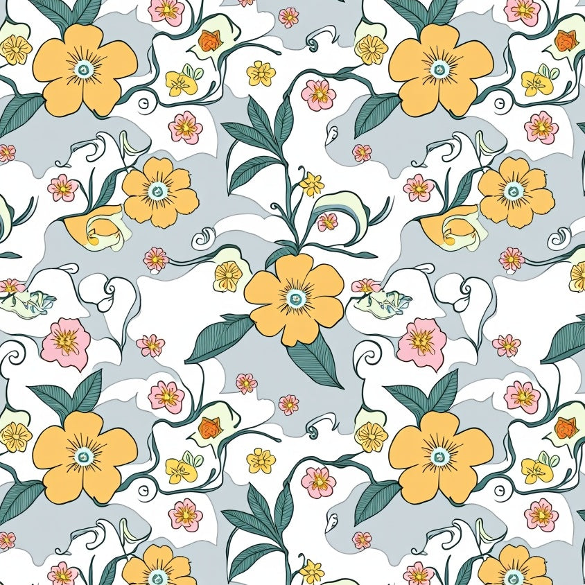 Interlocking Citrus Bloom with Floral Motifs and Curved Vines(Yellow)