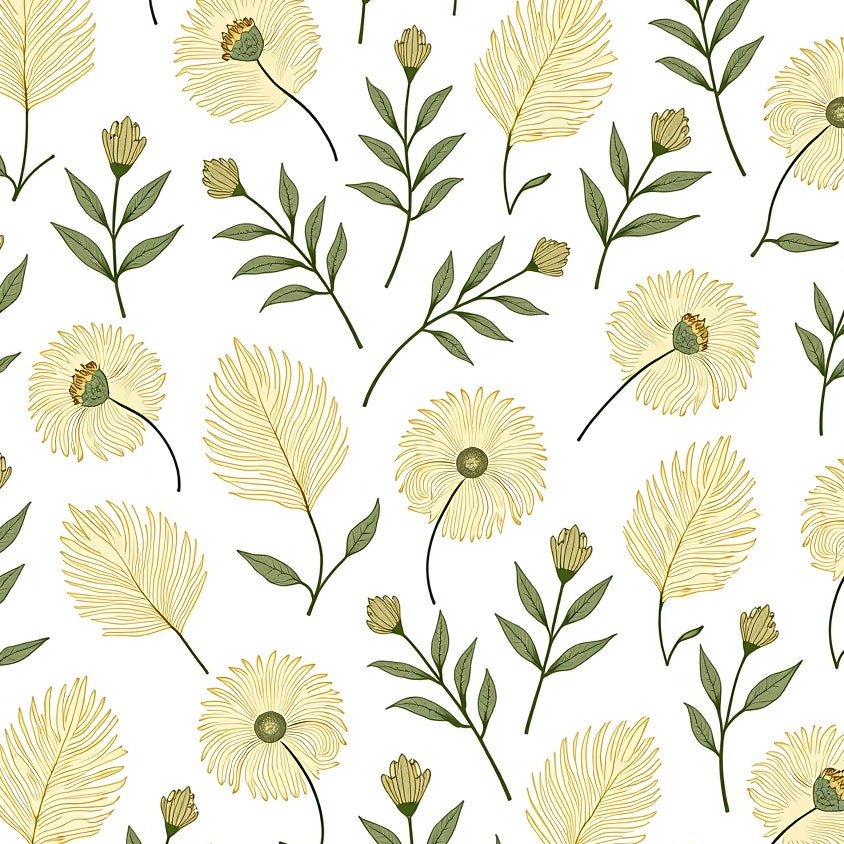 Wildflower with Stylized Fern Leaf Accents(Yellow)