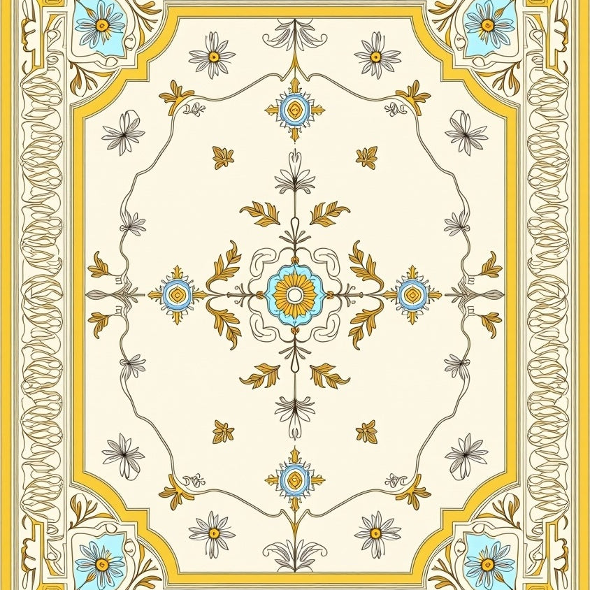 Zesty Symmetrical Floral Motif Traditional Artisan(Yellow)