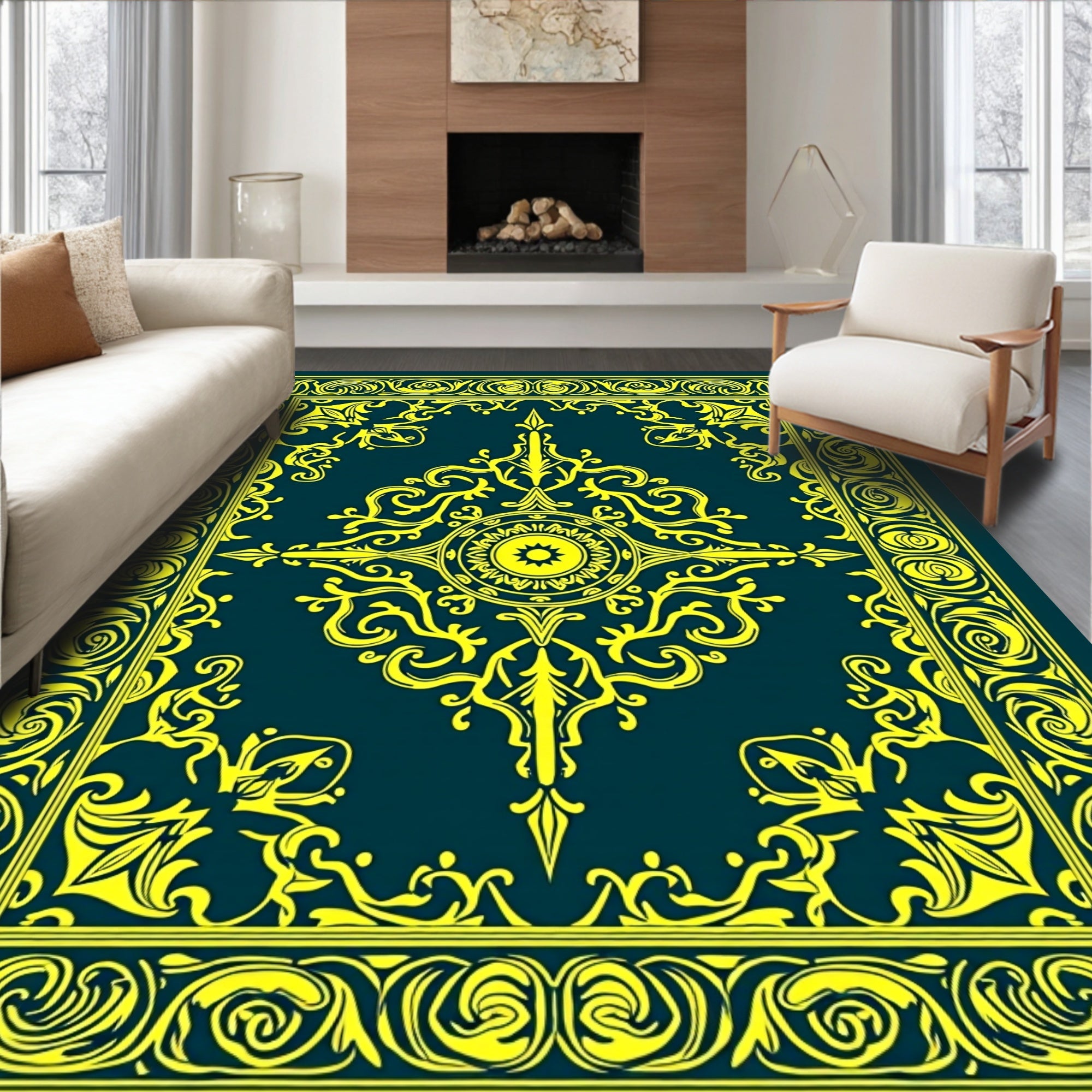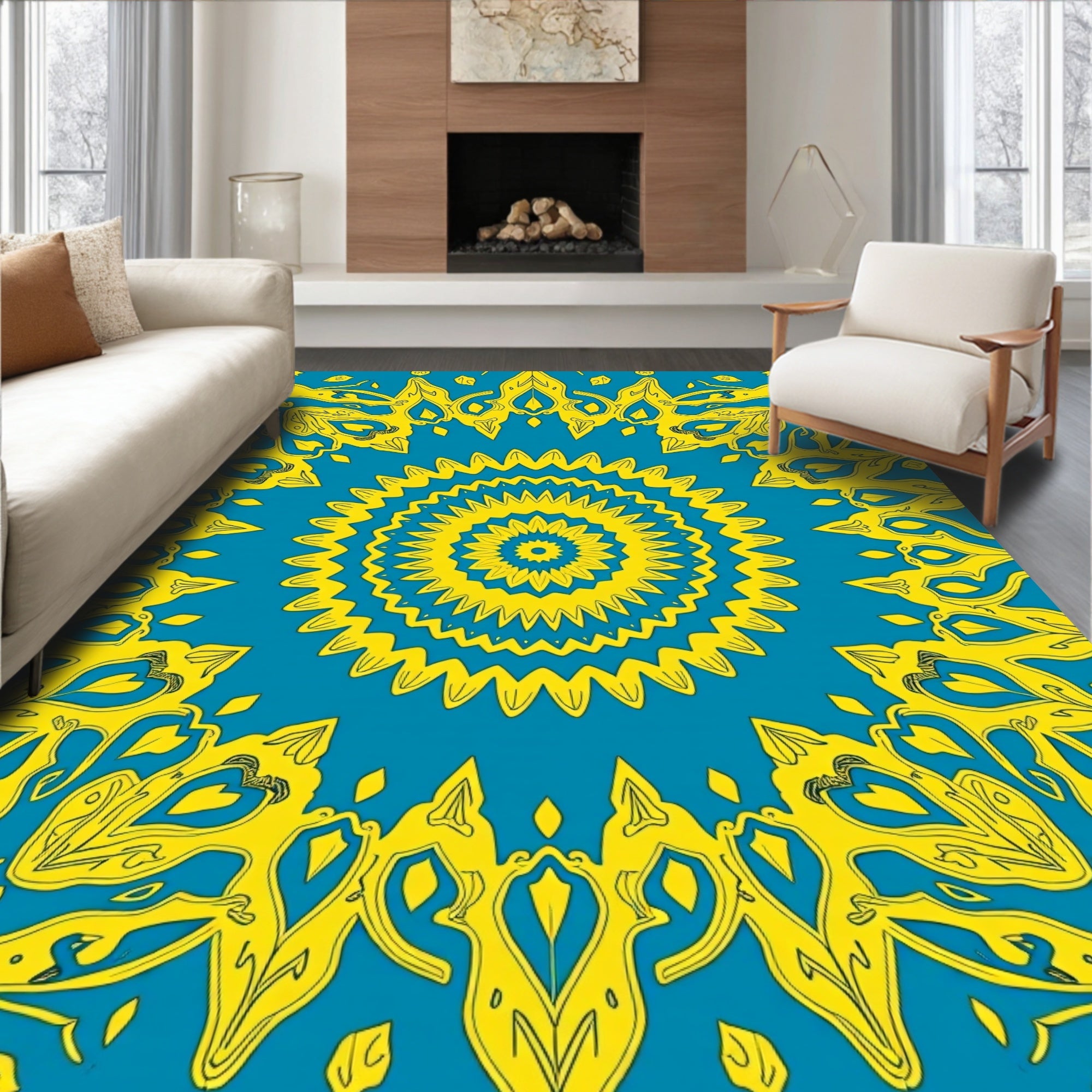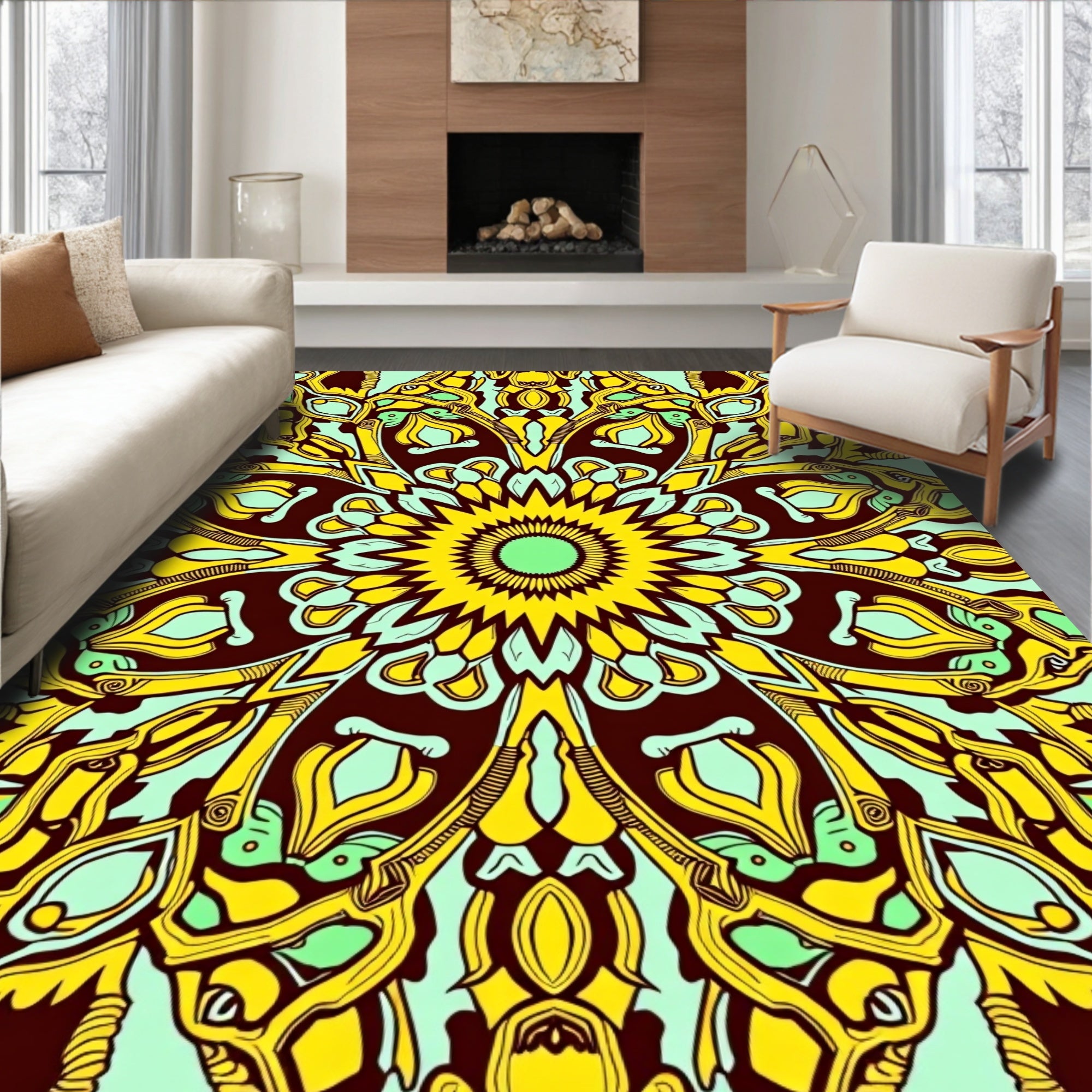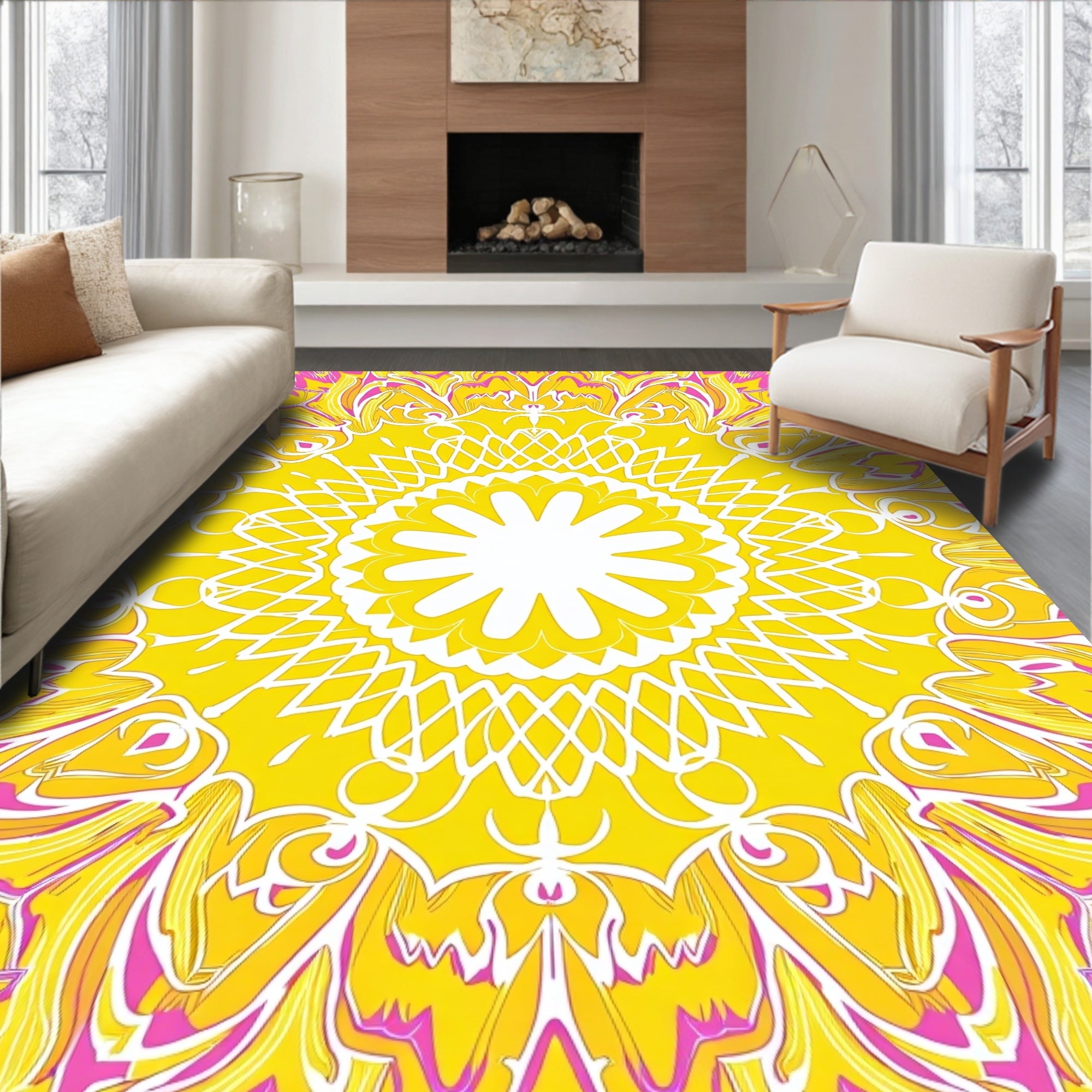 Sunburst Medallion Interlocking with Dreamy Ombre Motifs(Yellow)