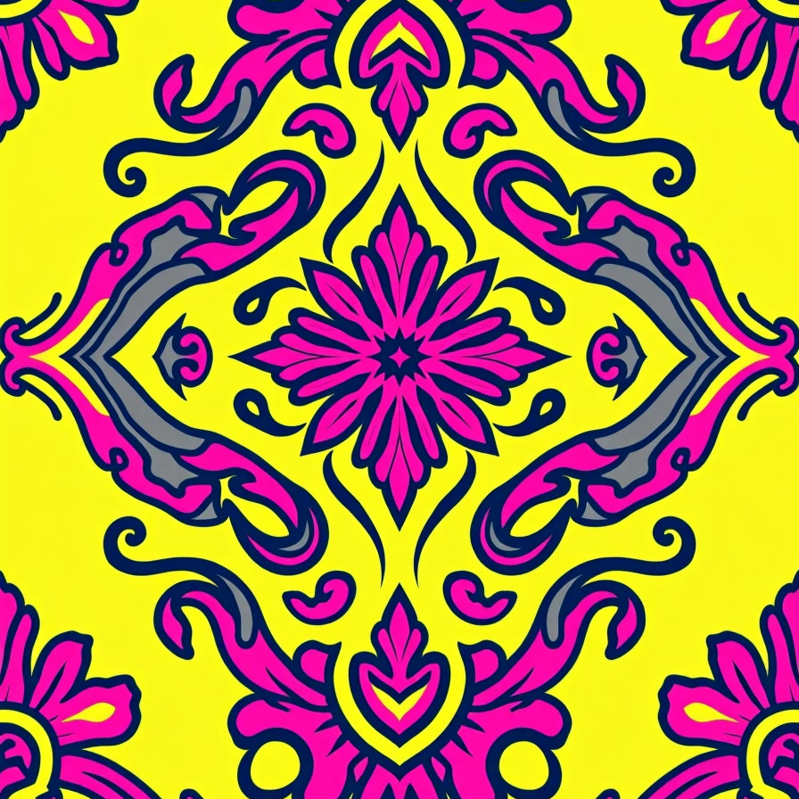 Luxurious Damask Vintage Ornate Floral Scrollwork Baroque Motif (Yellow)