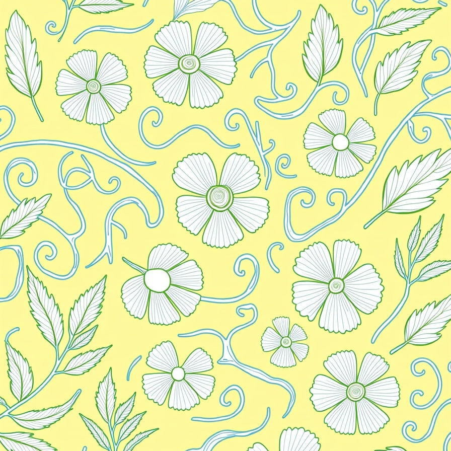 Classic Blooming Garden Scroll Timeless Artwork (Yellow)