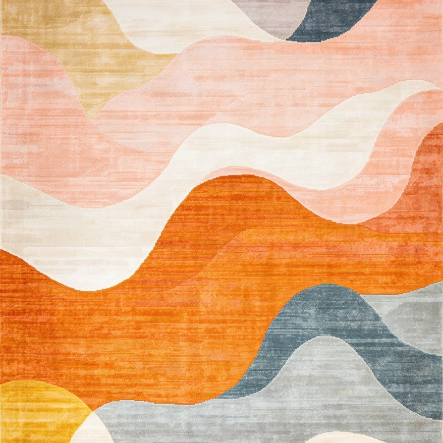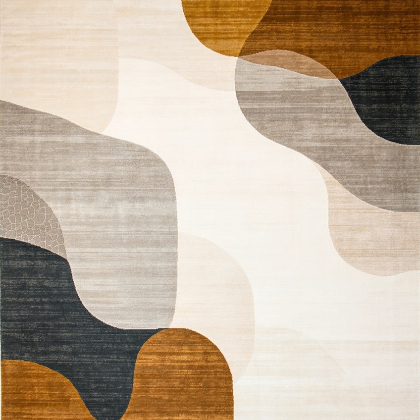 Modern Non Slip with Curved Lines and Earthy Neutral Palette(Beige)