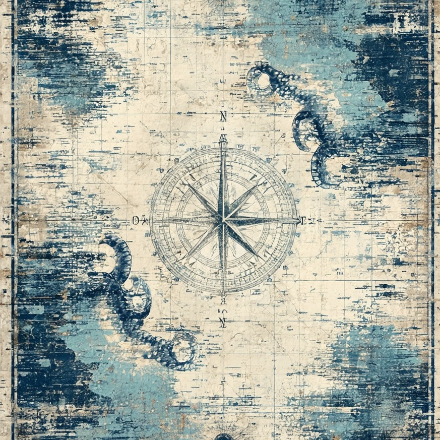 Marine Life Treasure Map Vintage Nautical Compass Room(Blue)