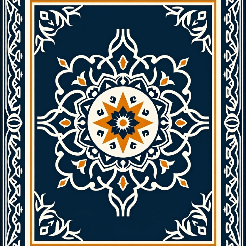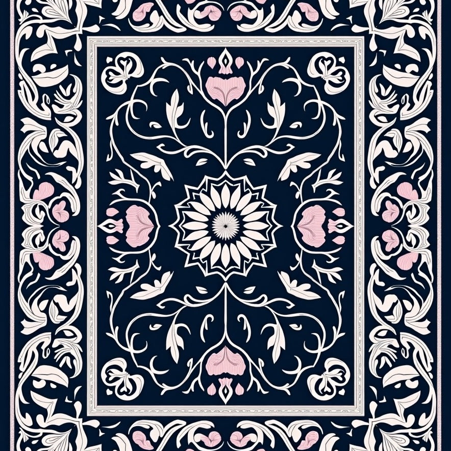 Heritage Artisan Medallion With Vintage Damask Inspiration(Navy)