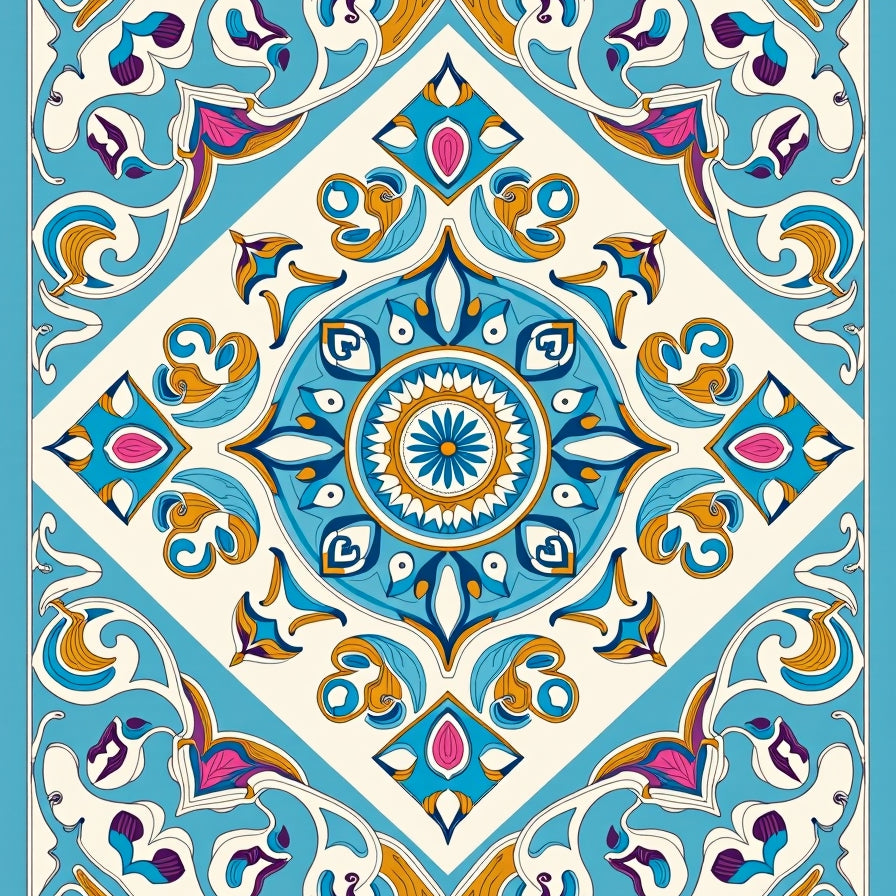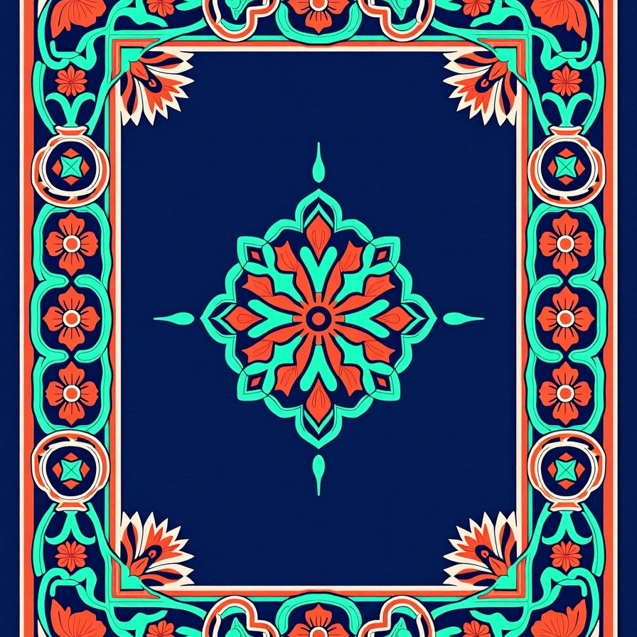 Inspired Medallion with Ornate Central Focal Points(Blue)