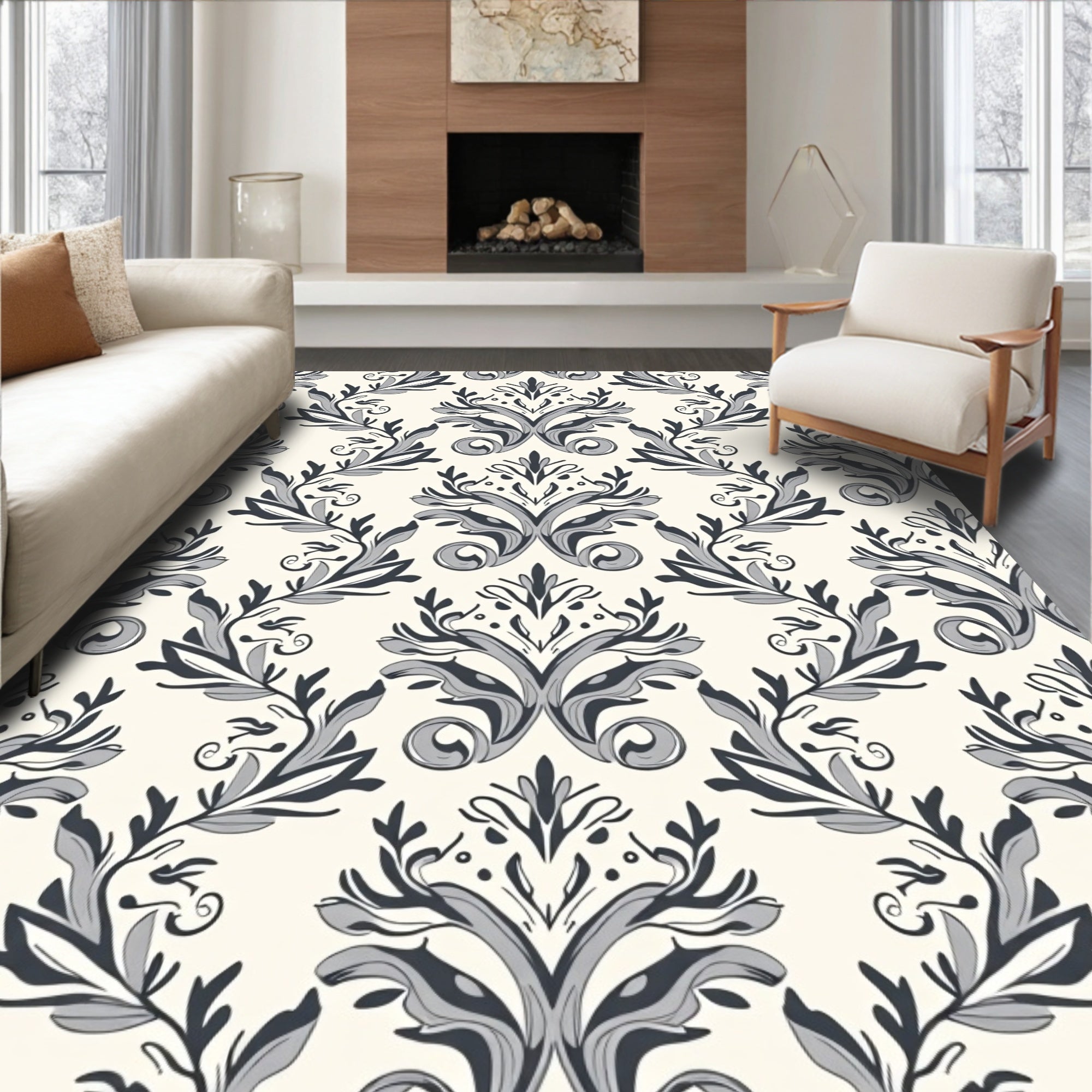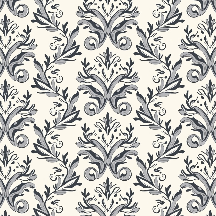 Classic Damask Scrollwork with Botanical Vine Motifs(Gray)