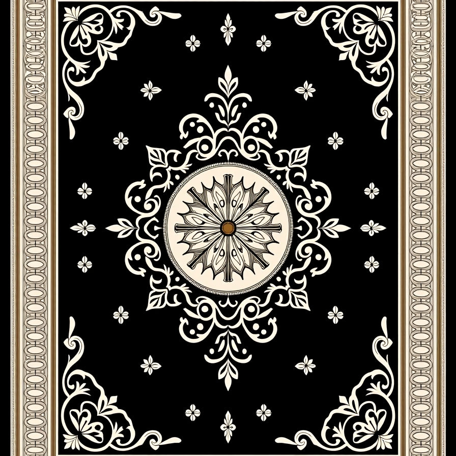 Artisan Medallion Tapestry with Baroque Flourish Motifs(Black)