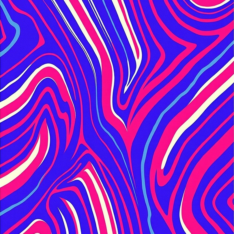 Retro Interlocking Wave Motif with Asymmetric Striped Detailing(Blue)