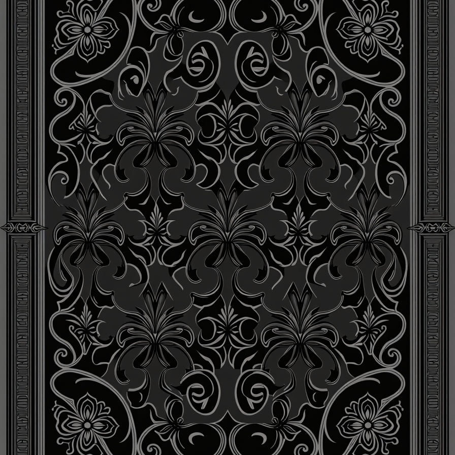 Luxurious Damask Victorian Baroque Scrollwork Palatial(Black)
