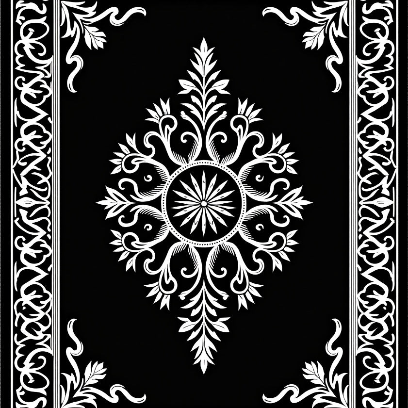 Damask Vinework with Ornate Botanical Scrolls(Black)