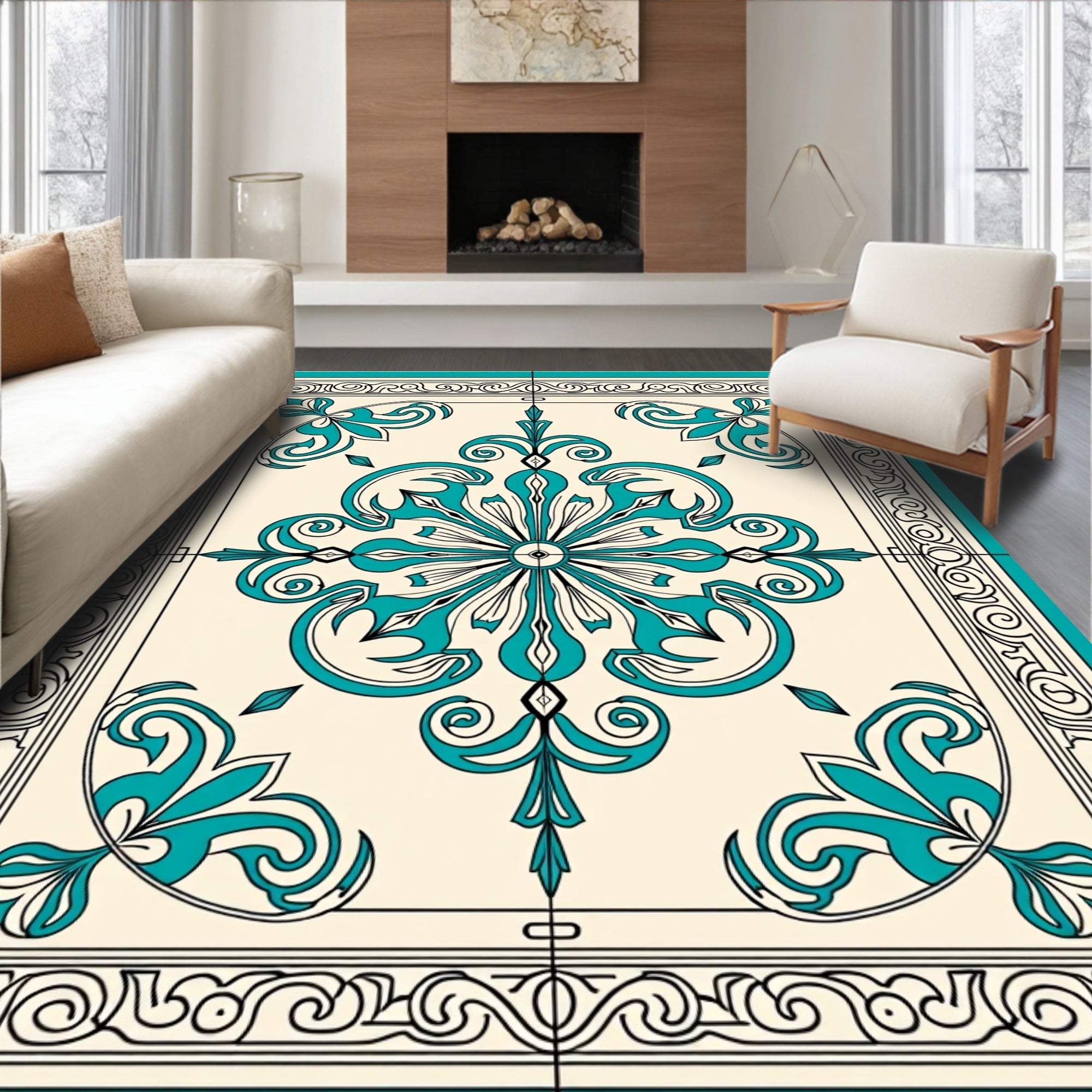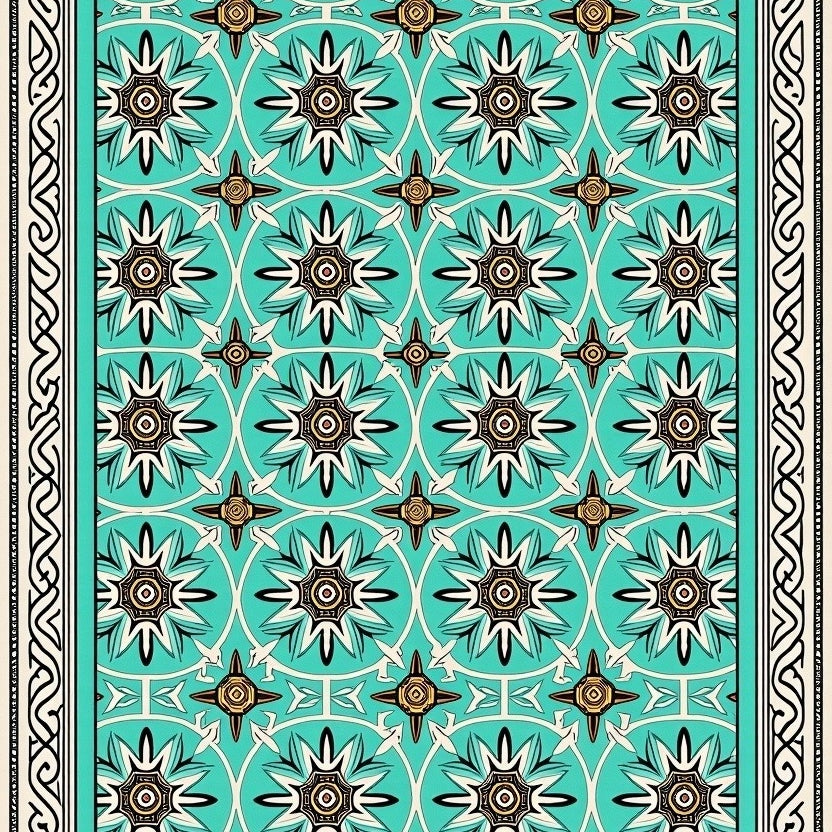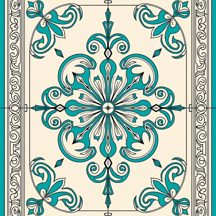 Artisan Medallion Featuring Lattice Scrollwork and Floral Emblems(Teal)