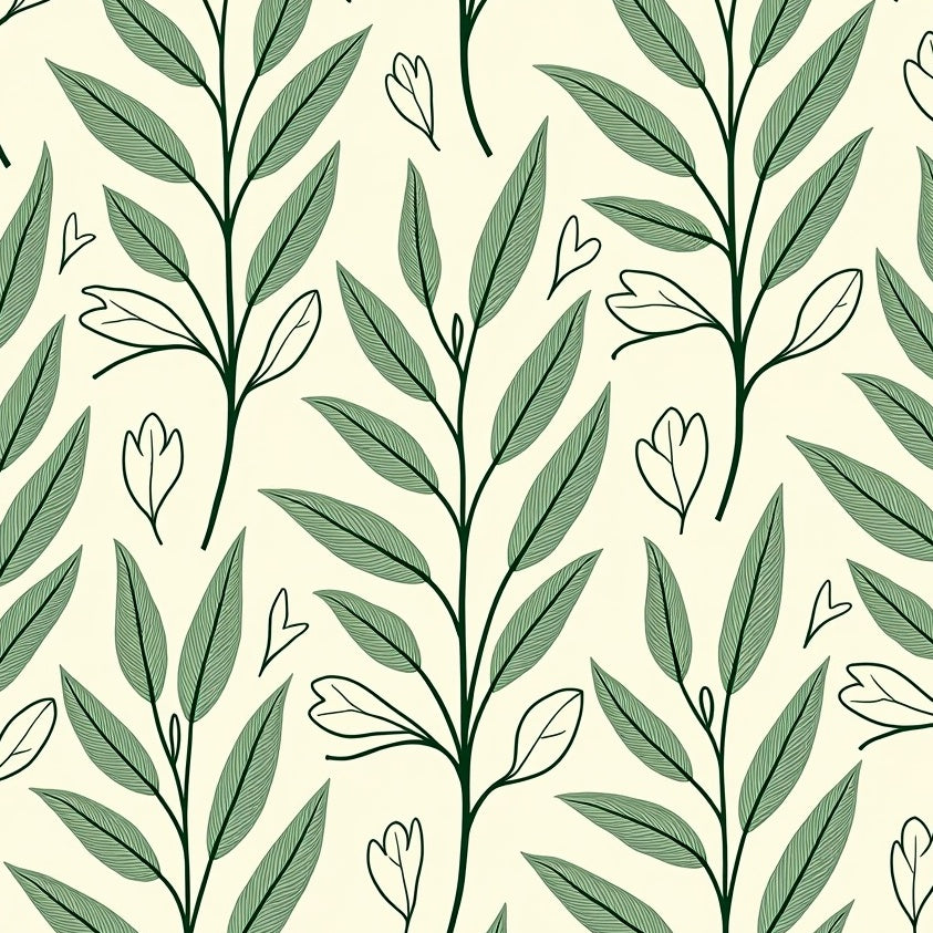 Botanical Sage Leaf Motif with Delicate Vine Tracery Design(Green)