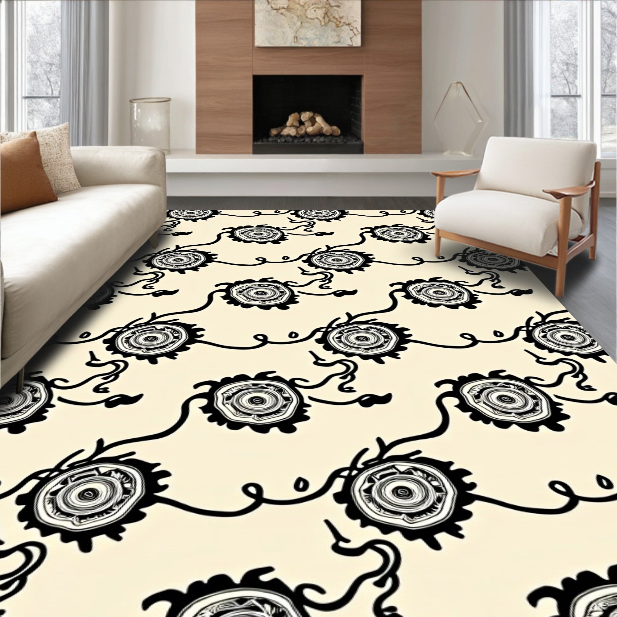 Neutral Beige Spiral Swirl Round with Contemporary Artistic Motif(Beige)