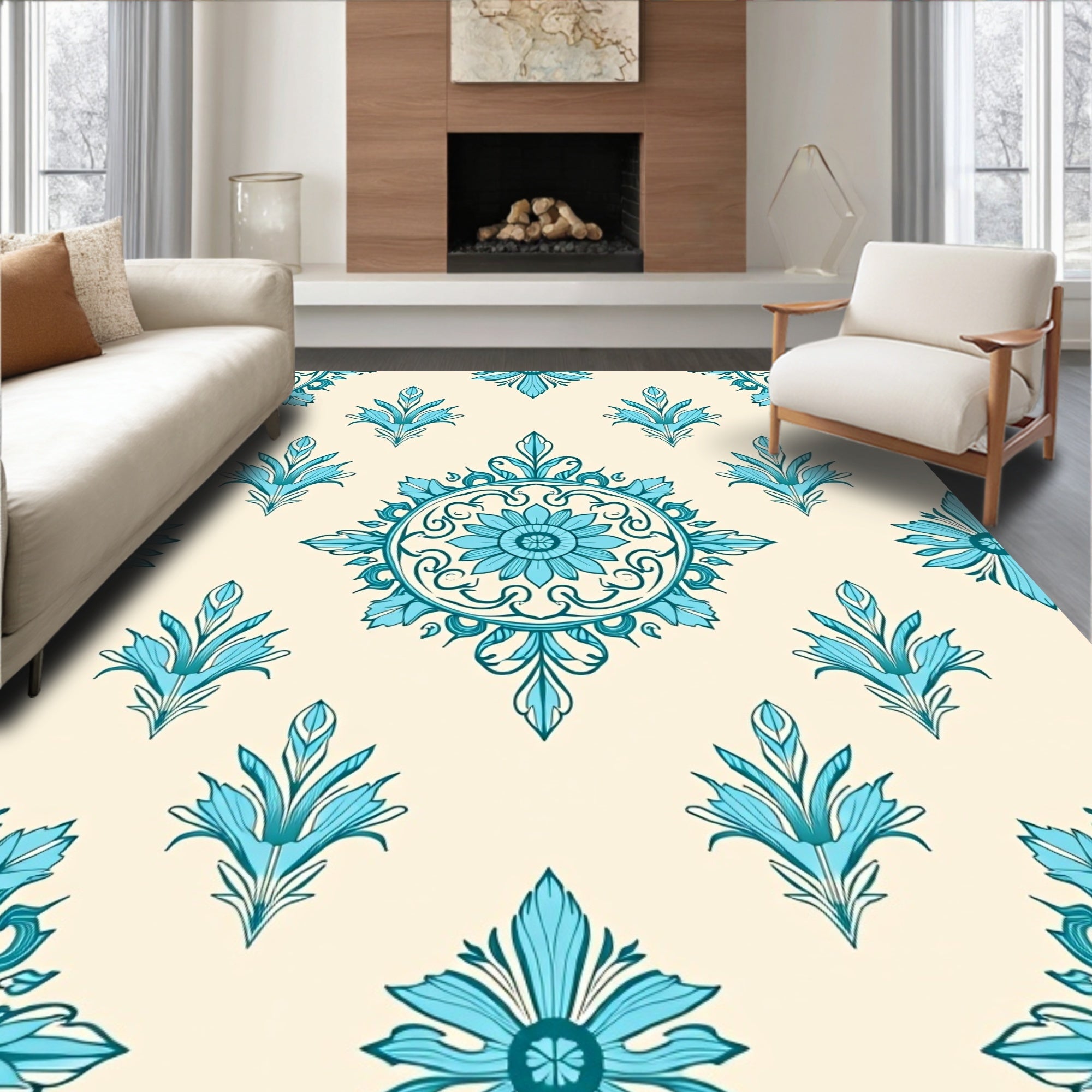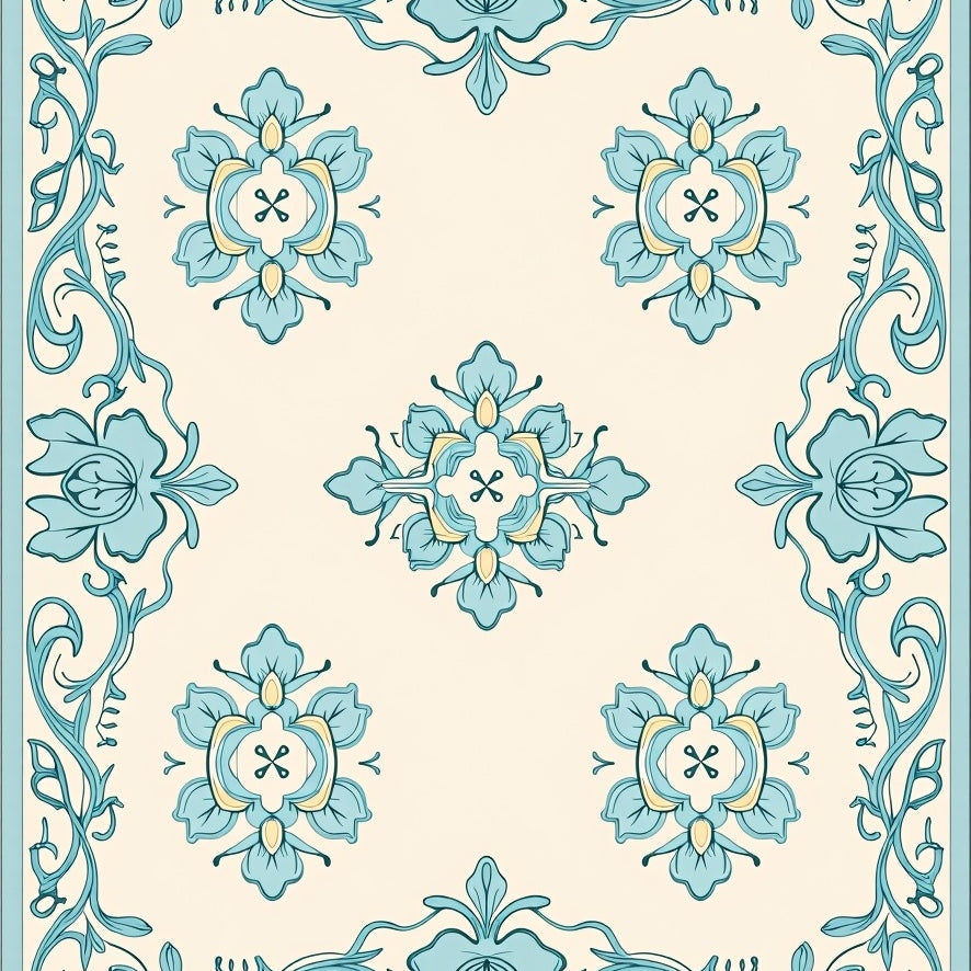 Serene Floral Mosaic with Interlocking Petal Medallions(Teal)