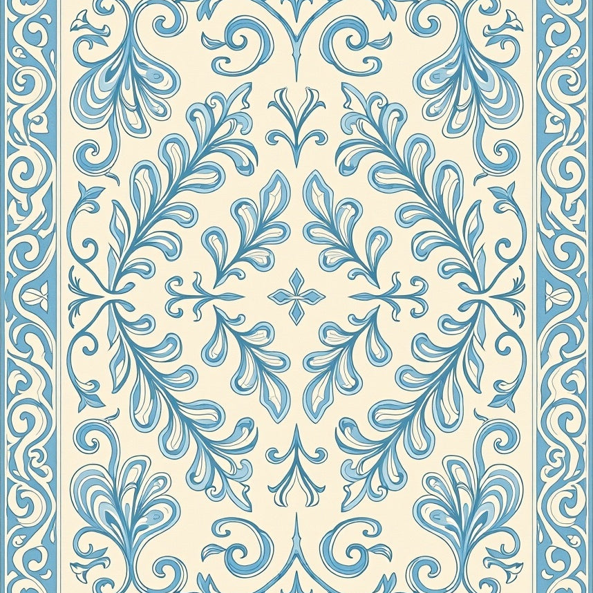 Tapestry Inspired Arabesque with Swirling Acanthus Leaves(Blue)