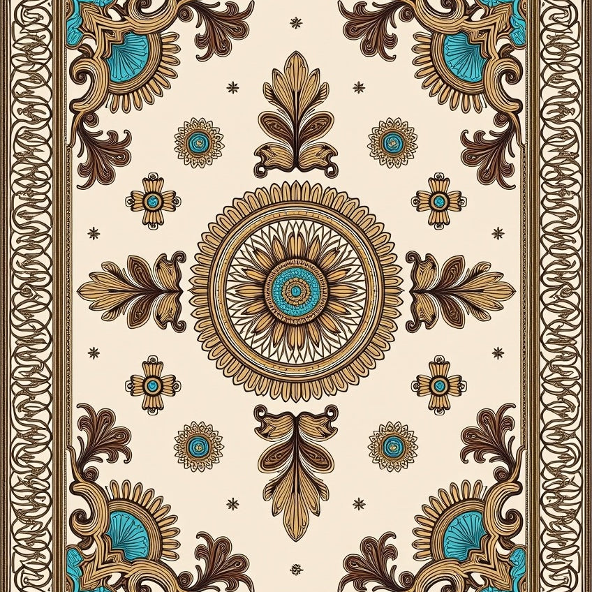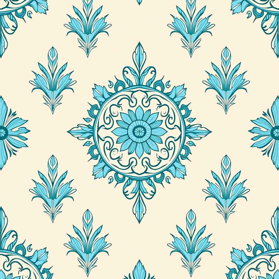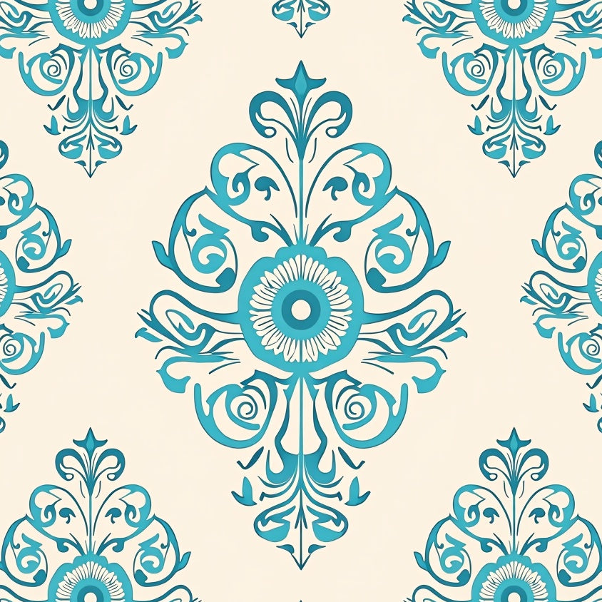 Traditional Damask Scrollwork with Central Rosette Flourish Motif(Turquoise)