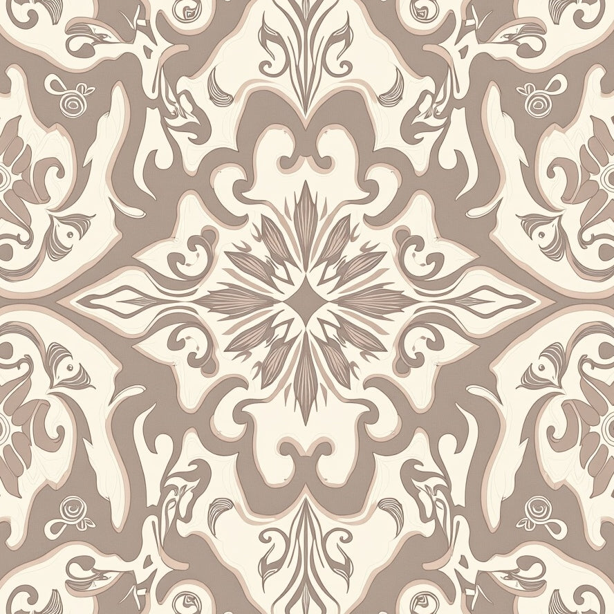 Elegant Damask Swirl Botanical Ornate Luxury Heirloom Collection(Beige)