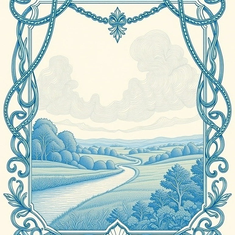 French Provincial Toile Inspired Countryside Pastoral Scene(Blue)