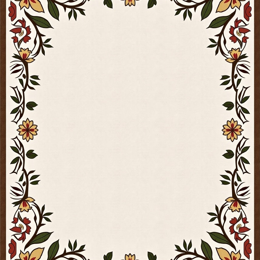 Botanical Vinework with Stylized Blossom Borders and Subtle Distressing(Beige)