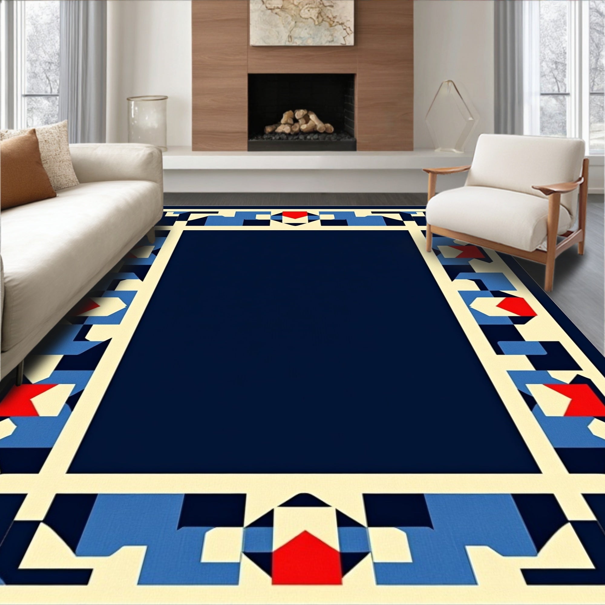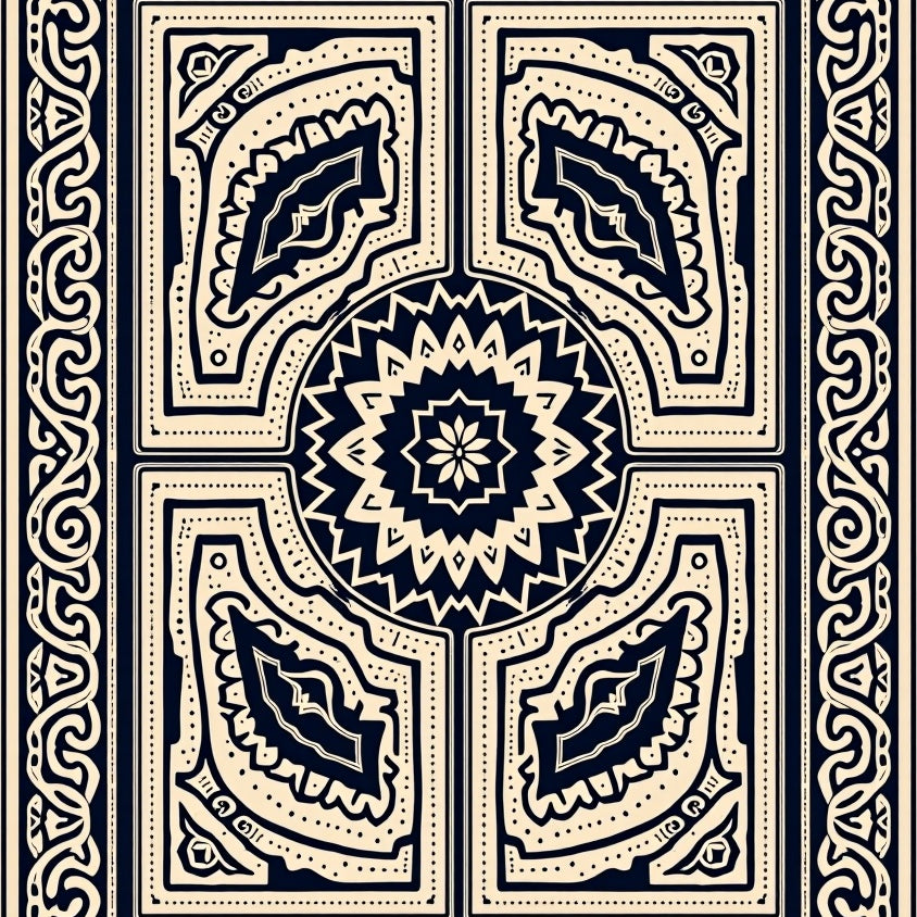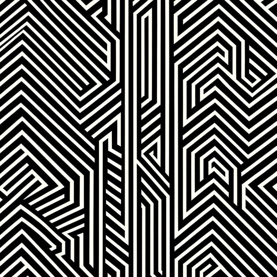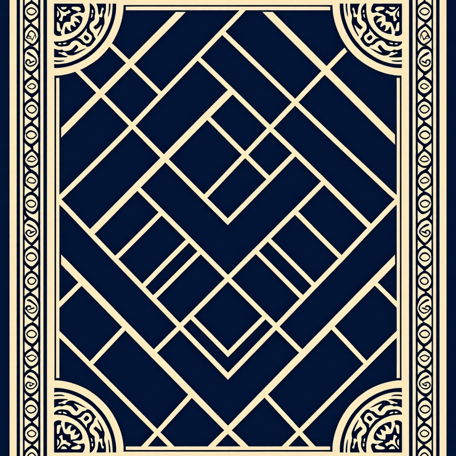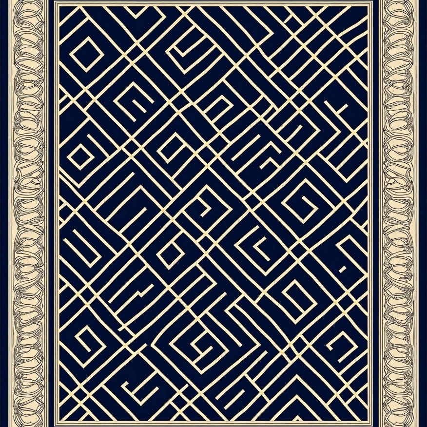Modernist Border Stripe with Interlocking Mosaic(Navy)