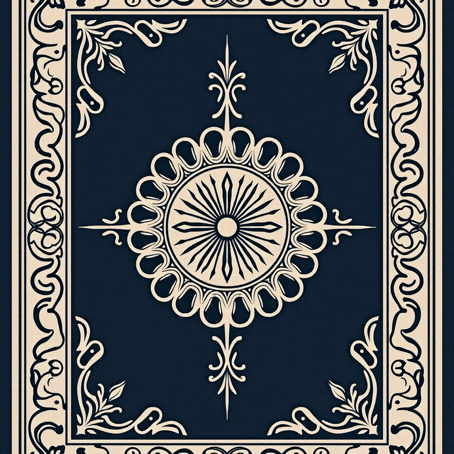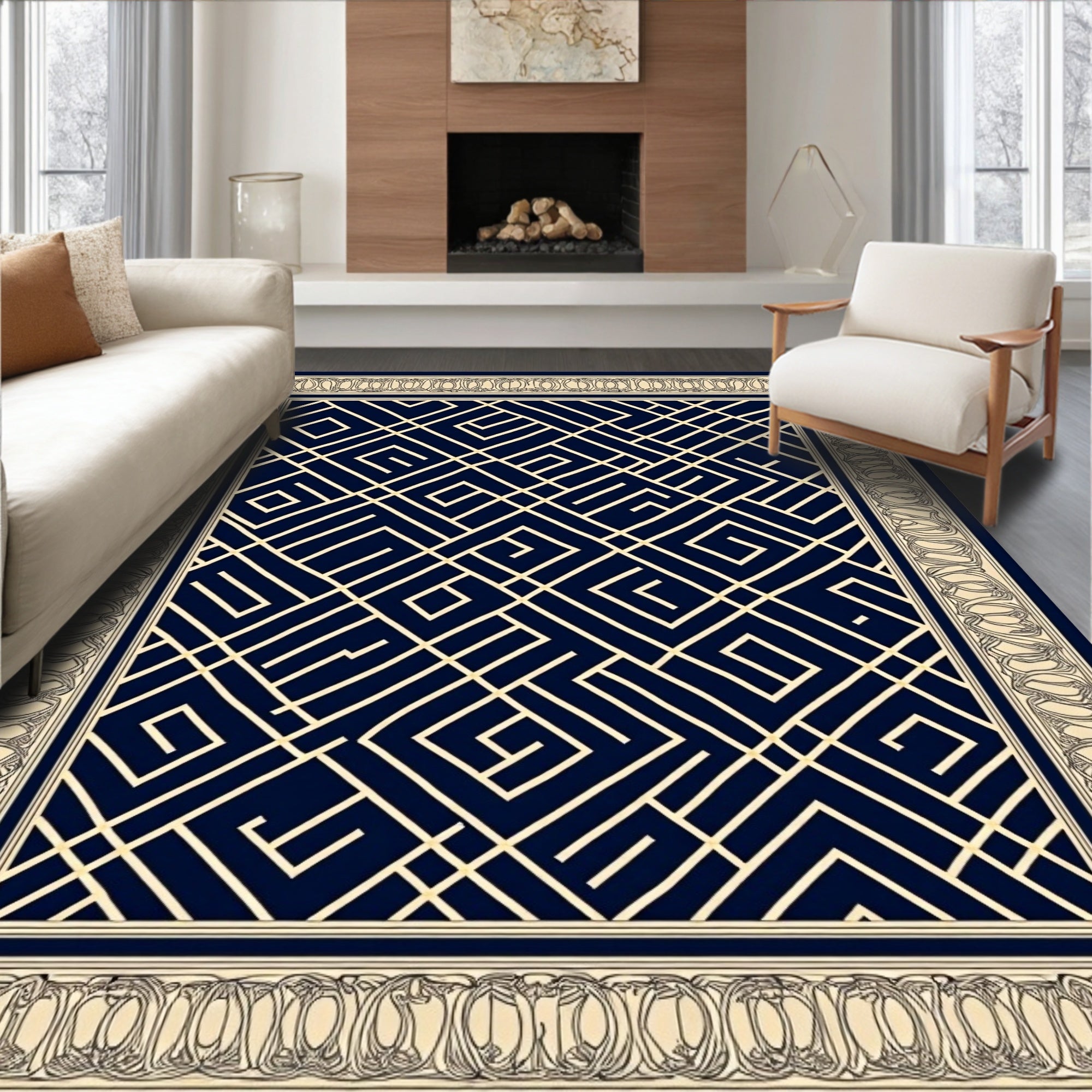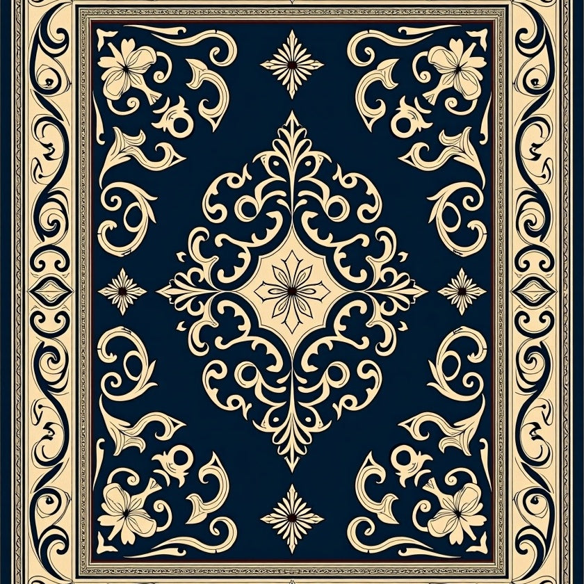 Classic Interlocking Trellis Motif with Ornate Scrollwork Accents(Navy)