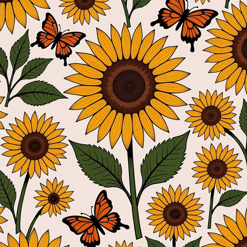 Vibrant Sunflower With Dancing Butterflies Decorative(Yellow)