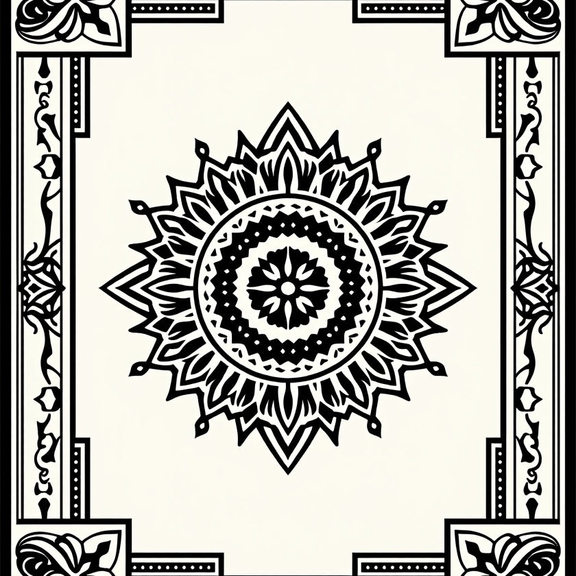 Vintage Medallion Tassel with Ornate Border Design(Black)