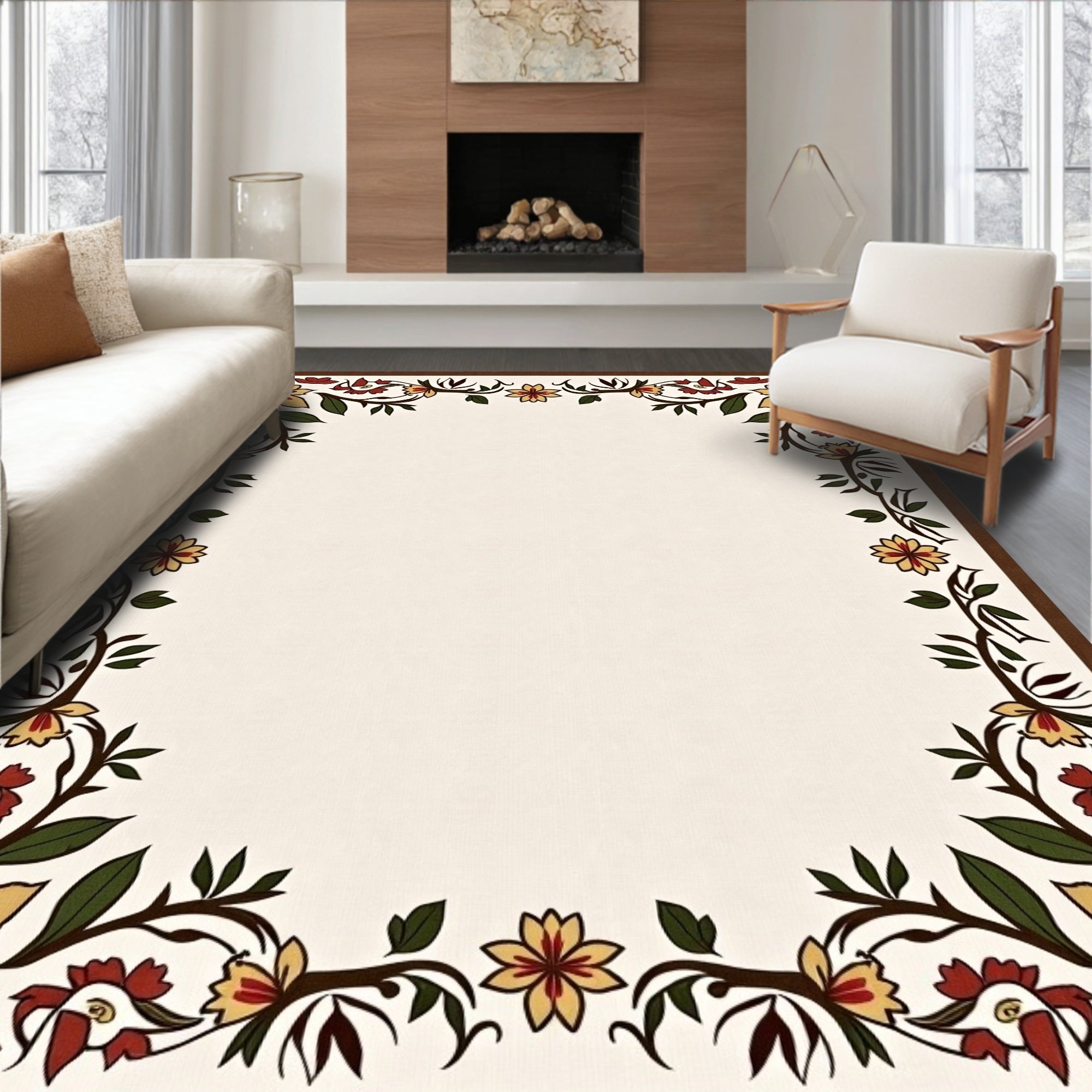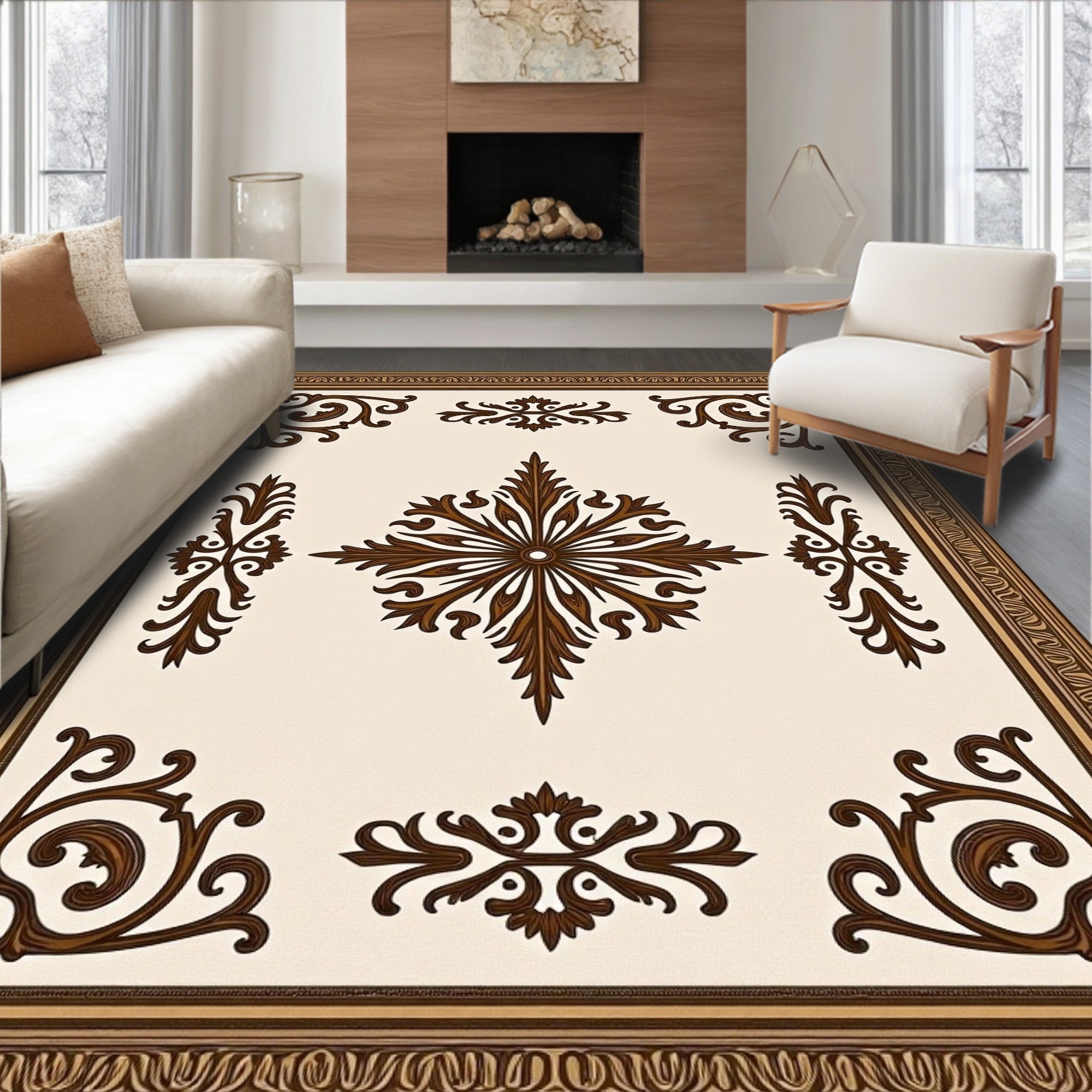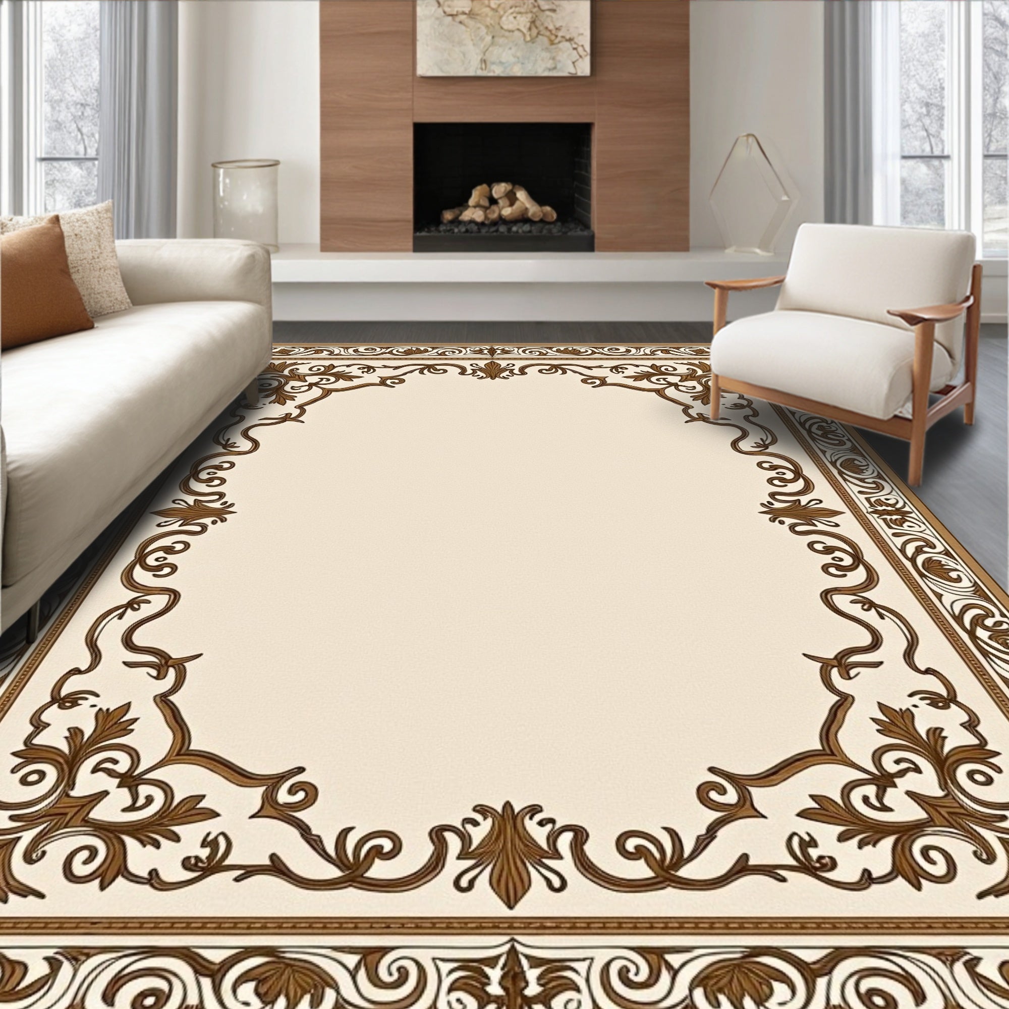 Damask Brocade Style Floor Elegant Paisley Swirl(Beige)