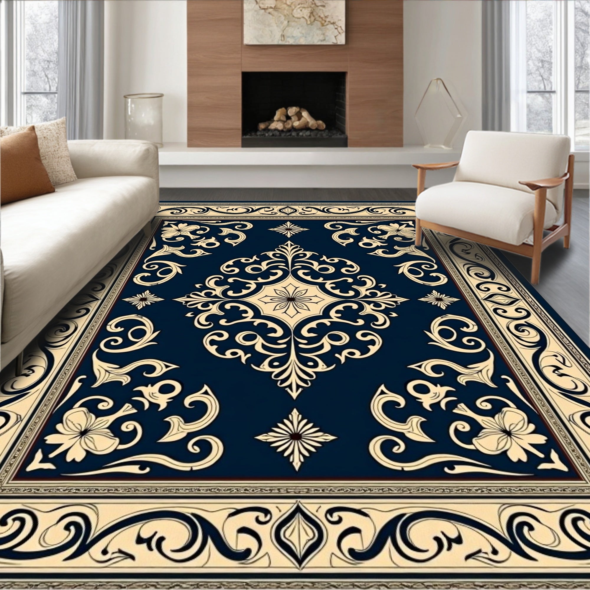 Vintage Damask Scrollwork Baroque Ornamental Tapestry Design(Blue)