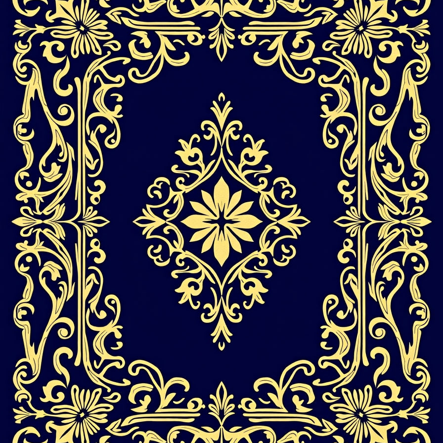 Vintage Paisley Damask with Ornamental Scrollwork Design(Navy)