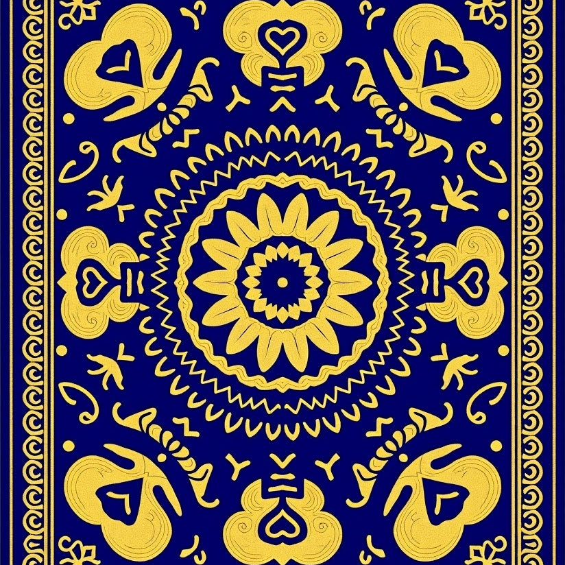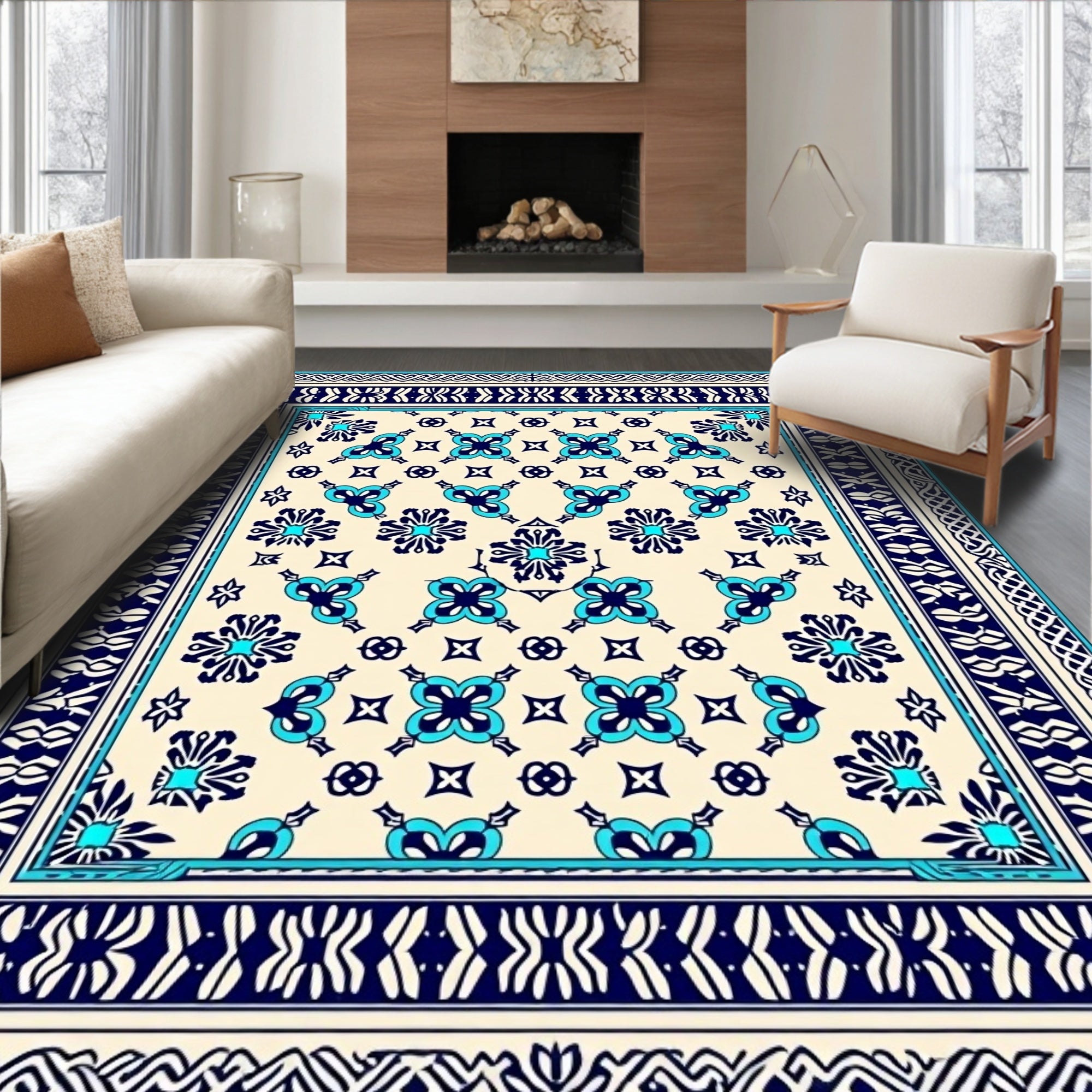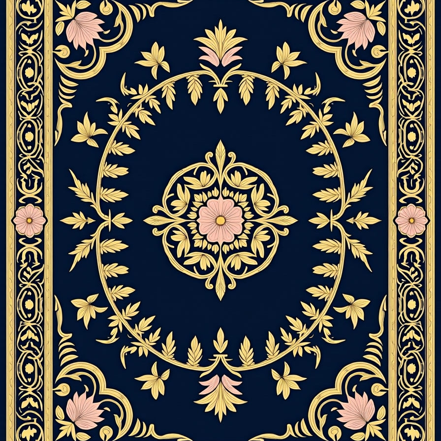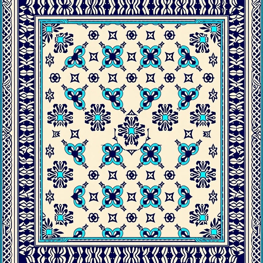 Lotus Medallion Mosaic with Ornate Border and Delicate Flourishes(Blue)