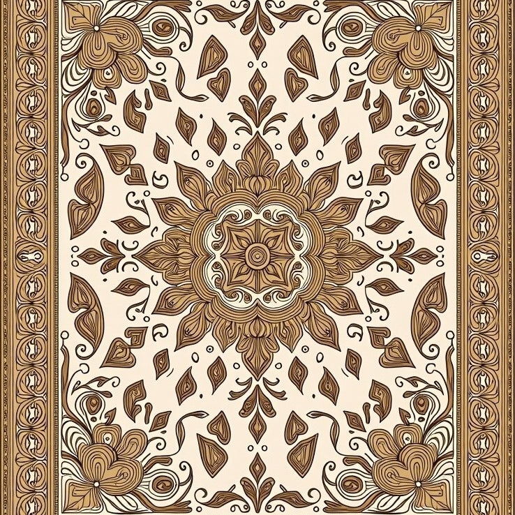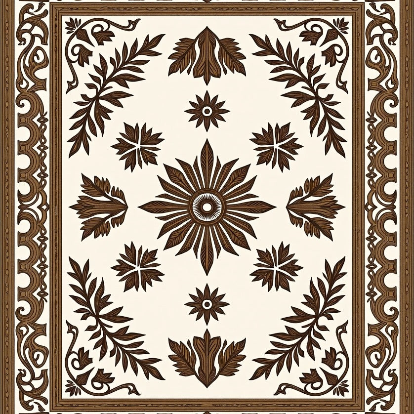 Medallion Mosaic with Vintage Botanical Accents(Brown)