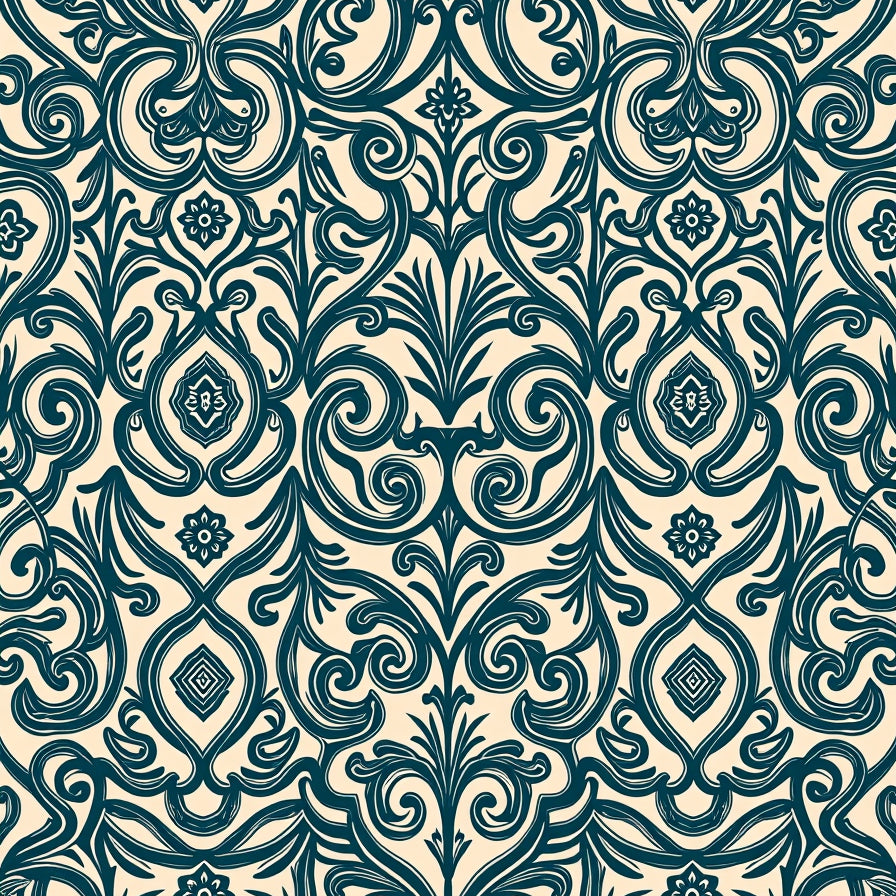 Vintage Botanica Interlocking Arabesque Scrollwork Motif(Beige)