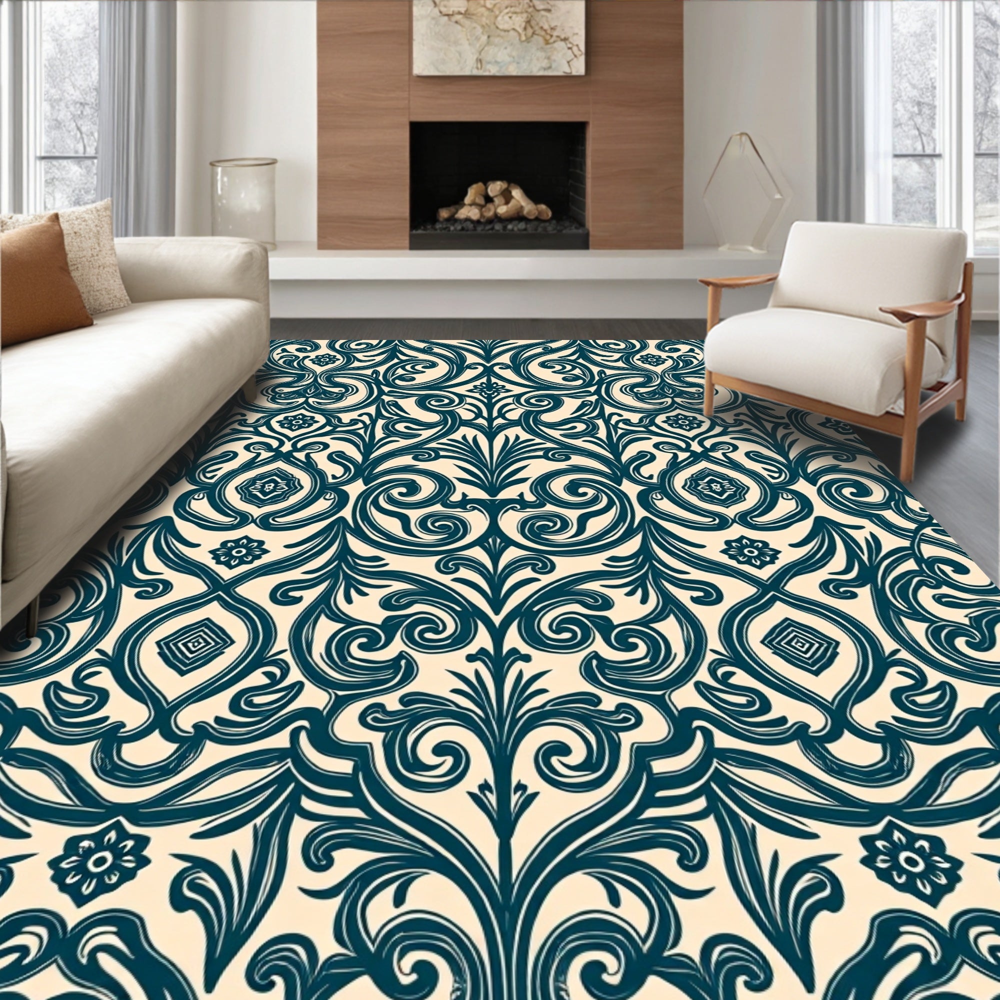 Traditional Damask Scrollwork Medallion Floor(Green)