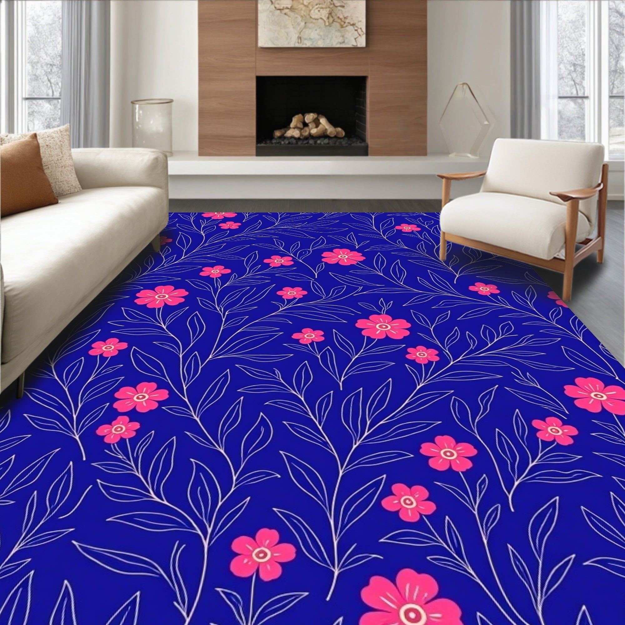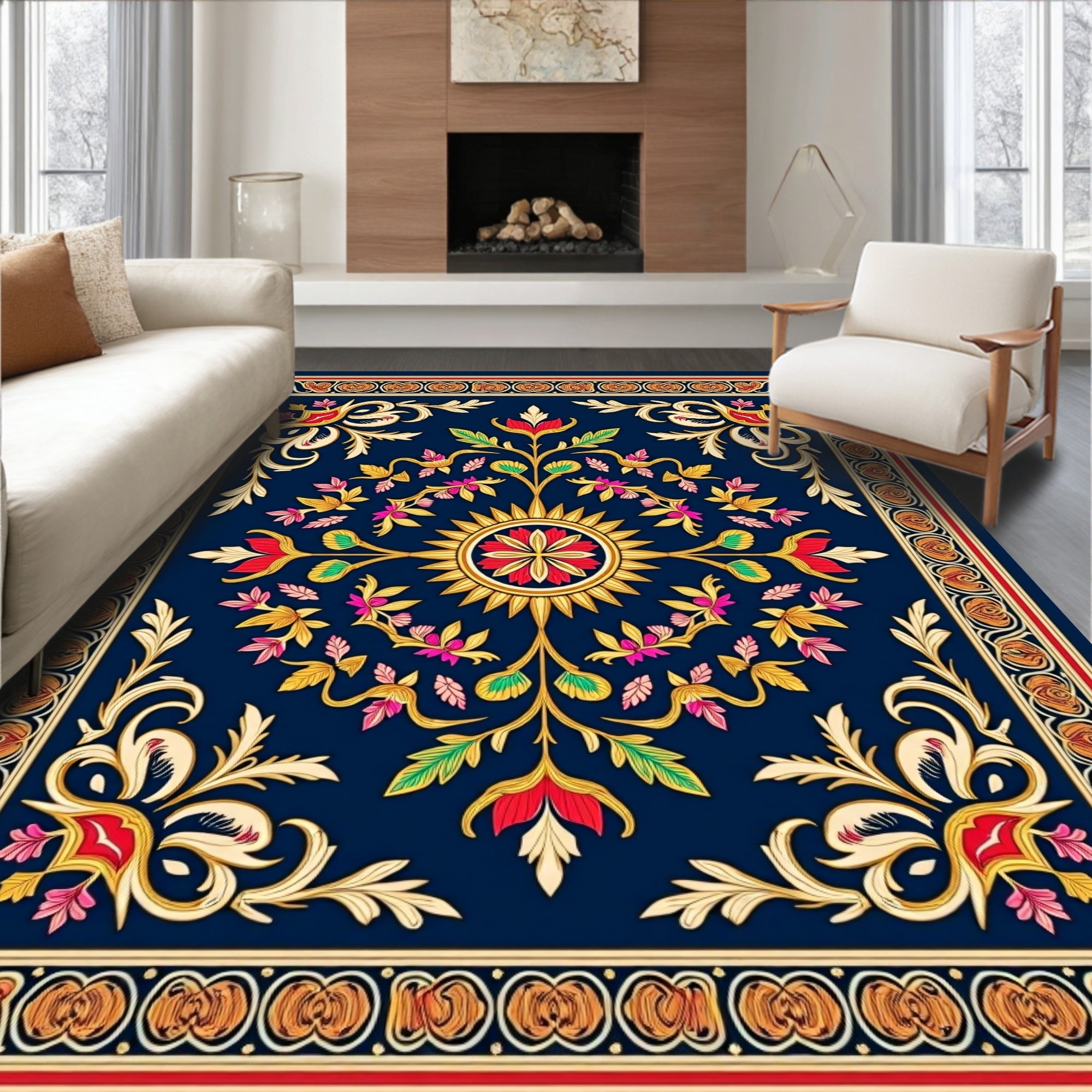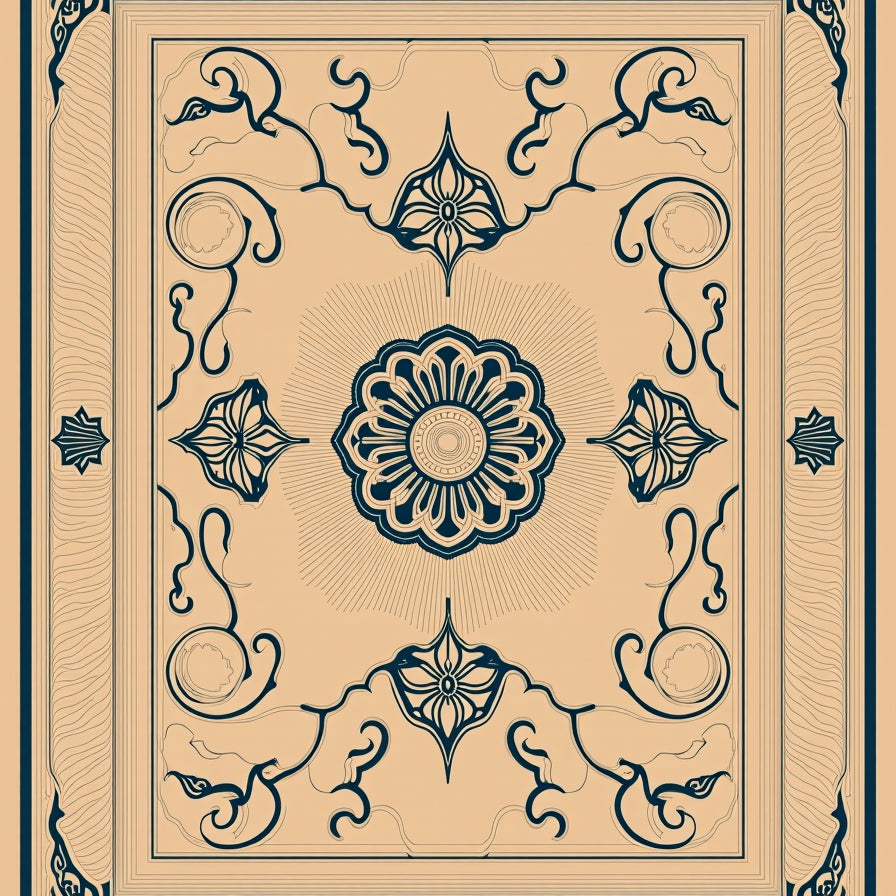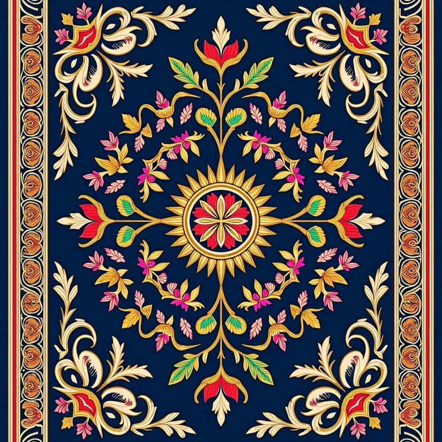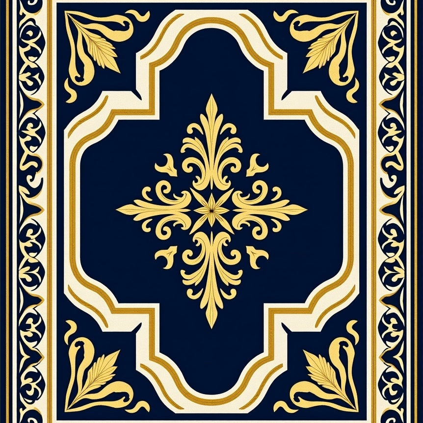 Elegant Floral Medallion With Interlocking Vines And Petals(Navy)