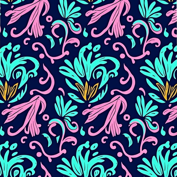 Blossoming Medallion Array with Flourishing Botanical Filigree Motifs(Navy)