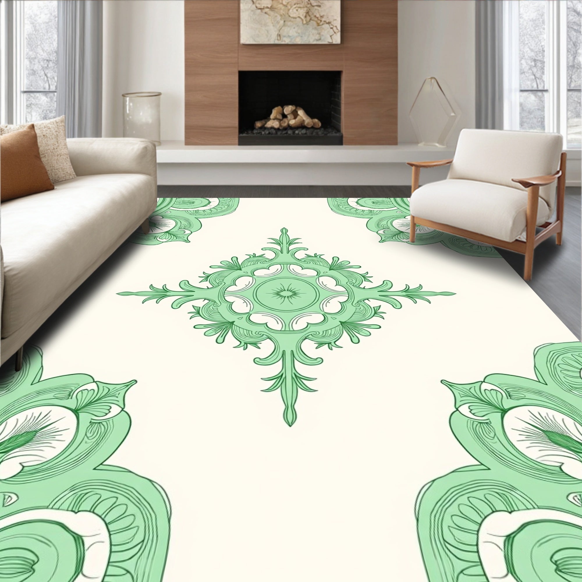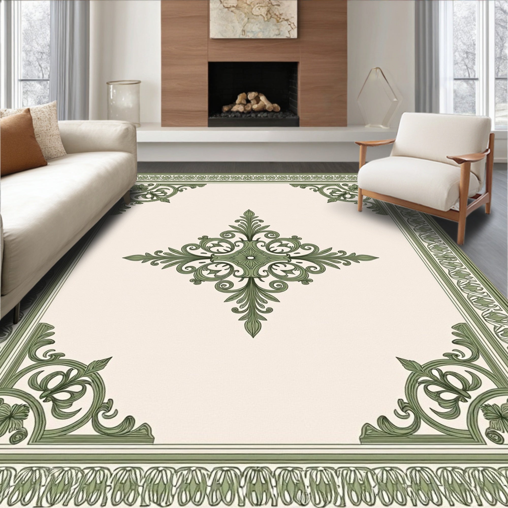 Traditional Damask with Wash Treatment Floor Covering(Green)