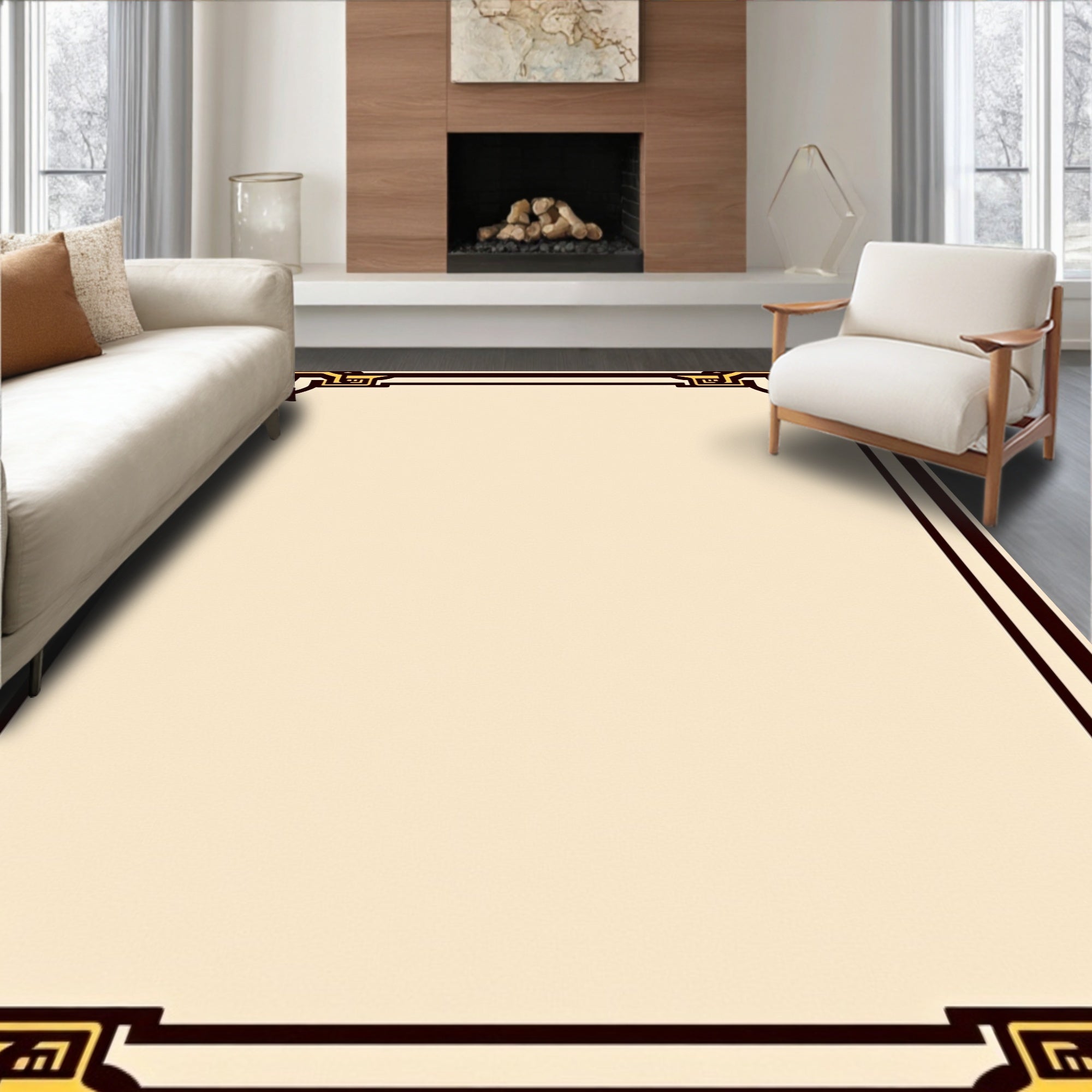 Classic Maze with Modern Interlocking Borders and Art Influence(Beige)
