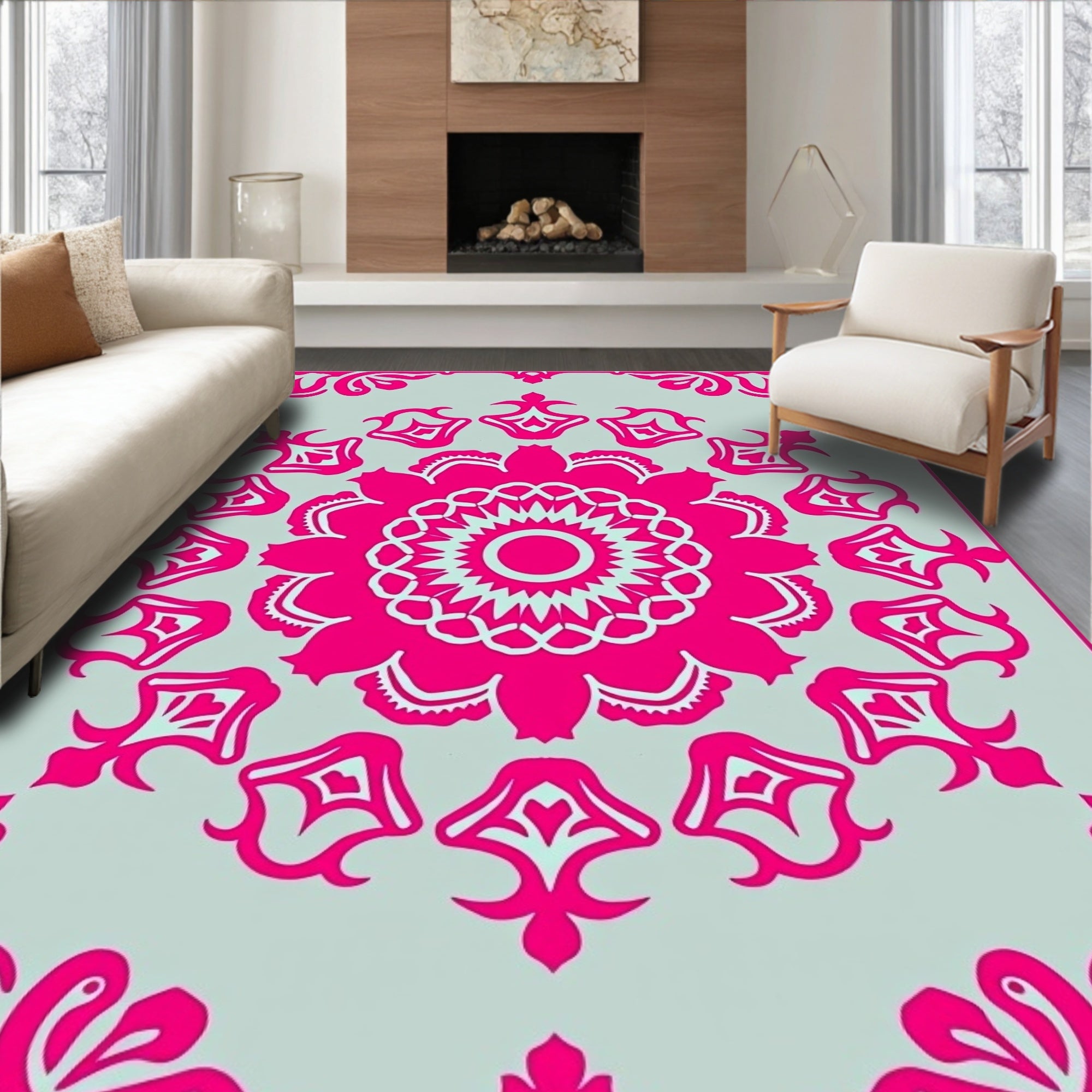 Luxurious Medallion Swirl Decorative Floor Accent(Pink)