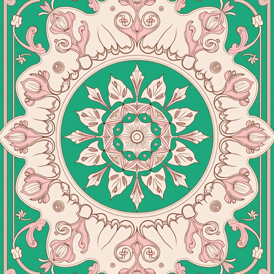 Lotus Bloom Interlocking Medallion Motif(Green)