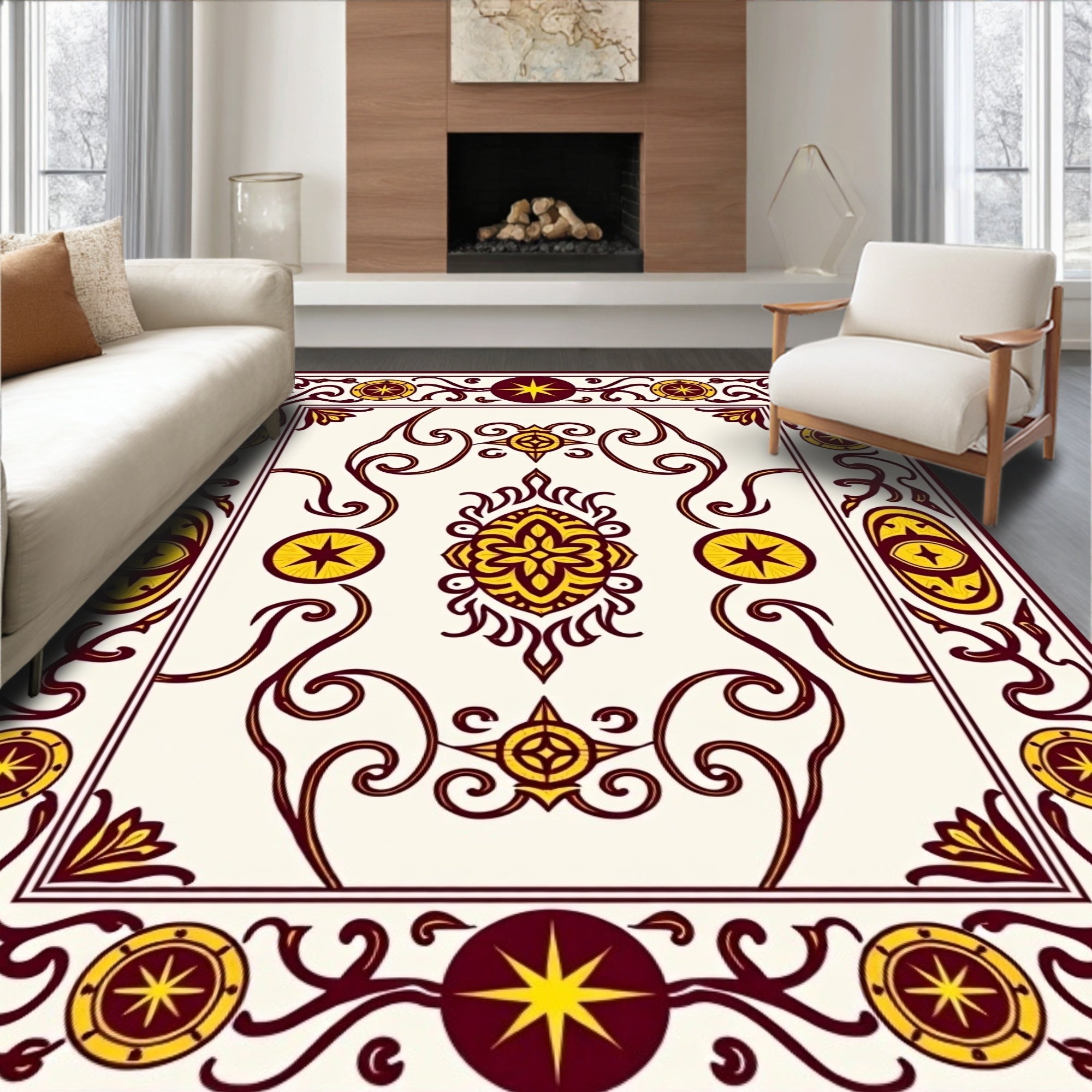 Retro Plush Floor Covering With Elegant Scroll Borders(Burgundy)