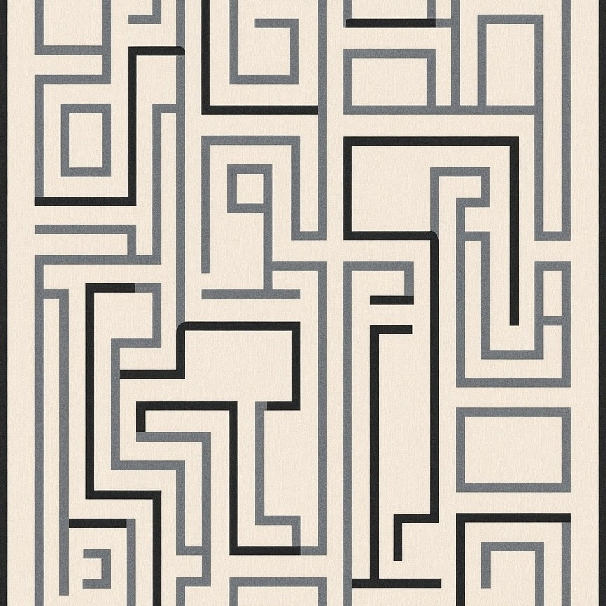 Modern Interlocking Maze with Minimalist Abstract Motifs(Beige)