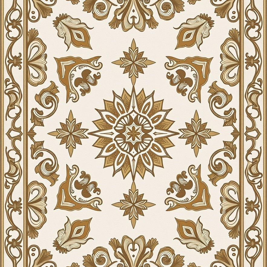 Damask Palmette with Symmetrical Garden Flourishes(Ivory)