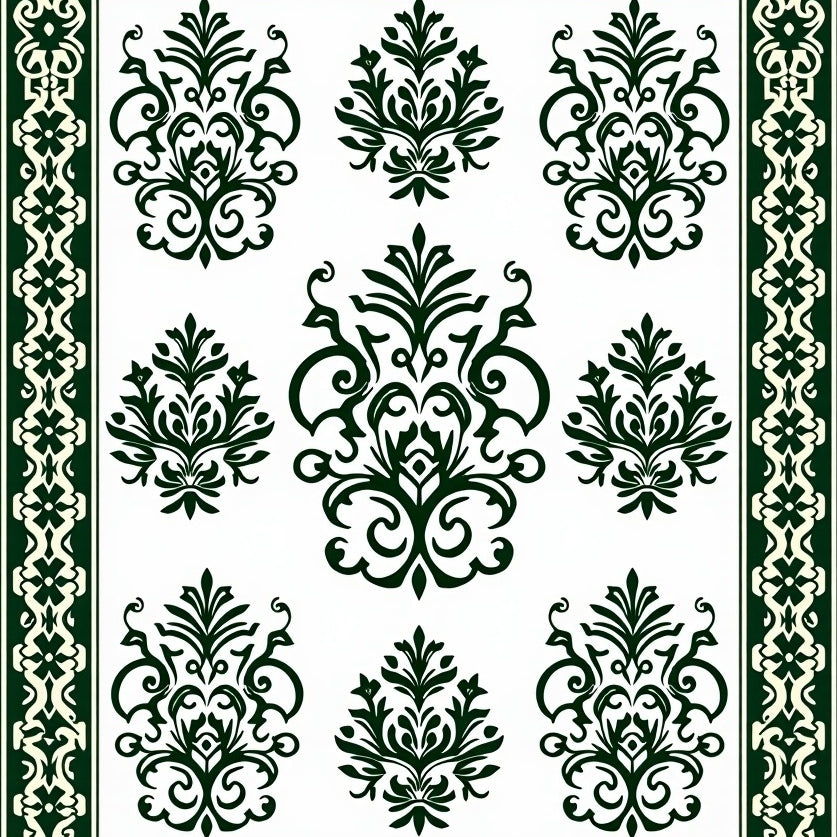 Classic Ornate Scrollwork with Interlocking Floral Filigree(Green)