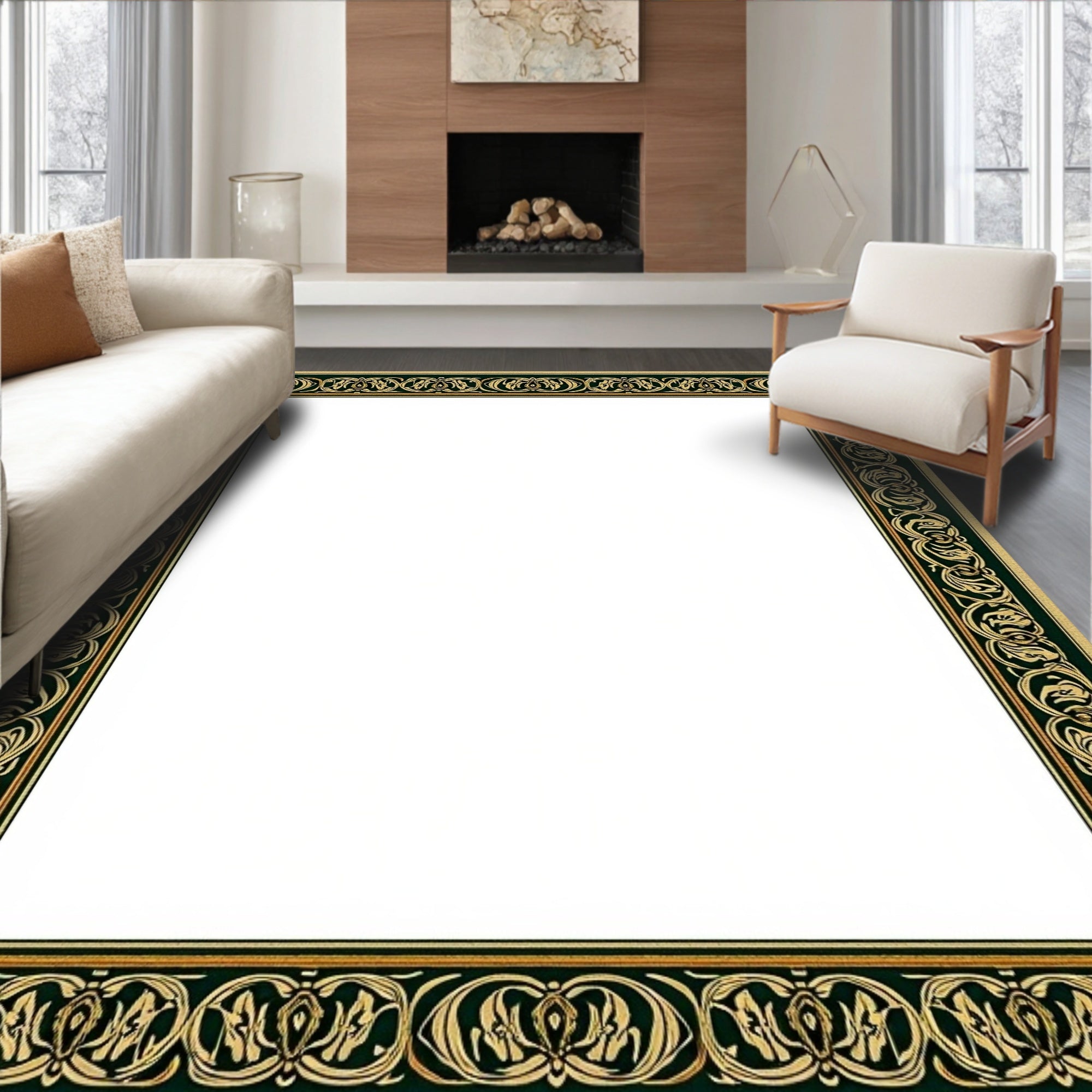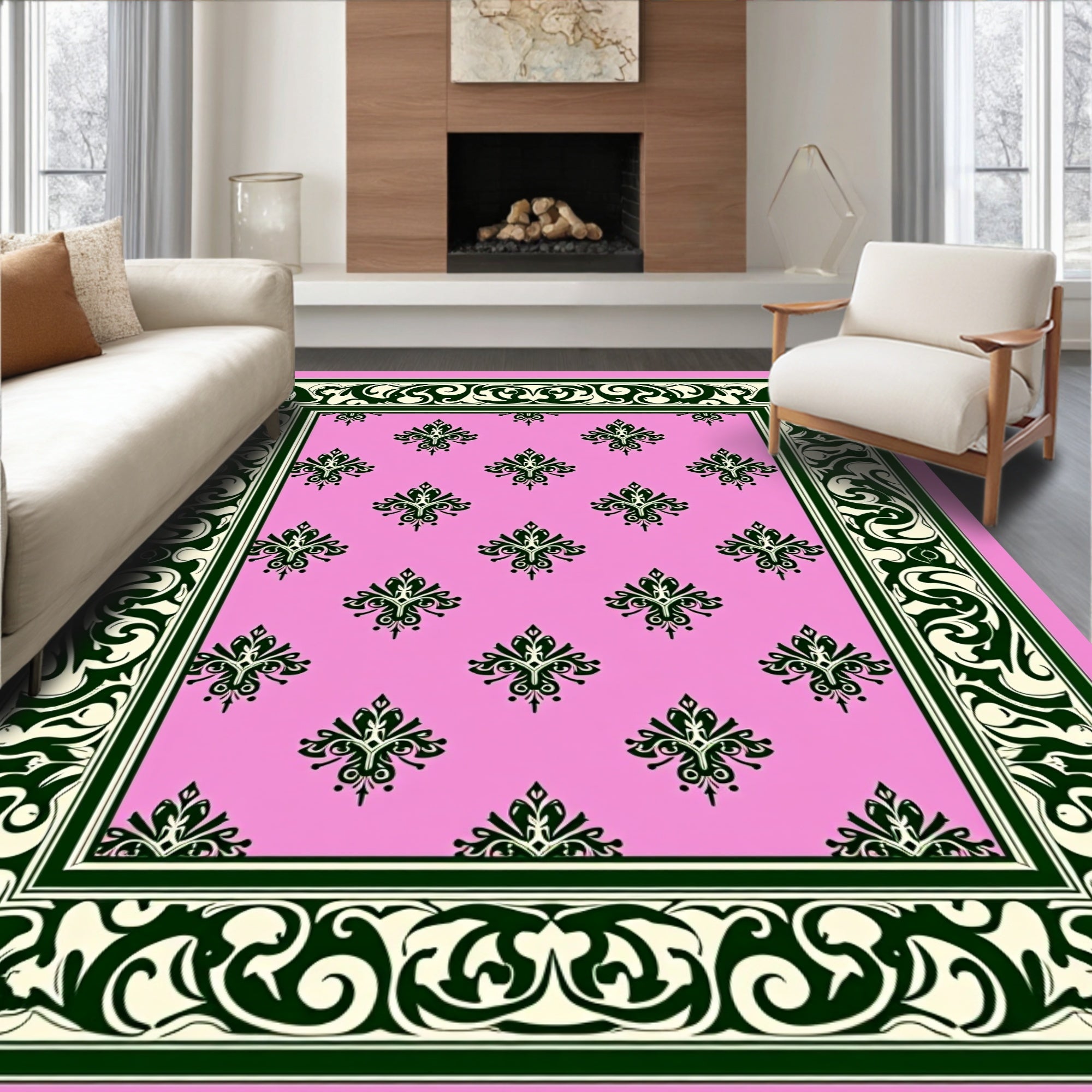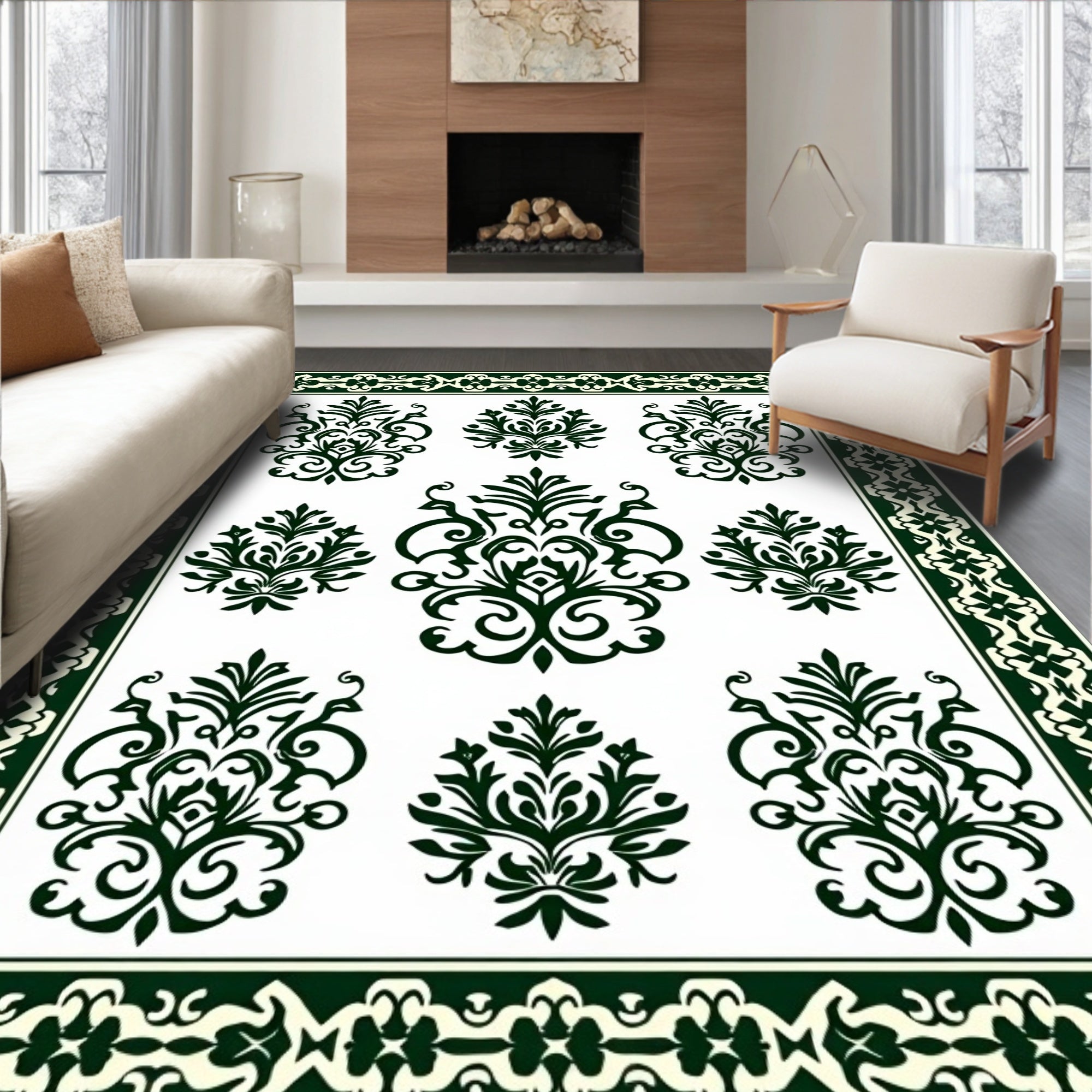 Distressed Arabesque Scroll Design Anti Slip(Green)