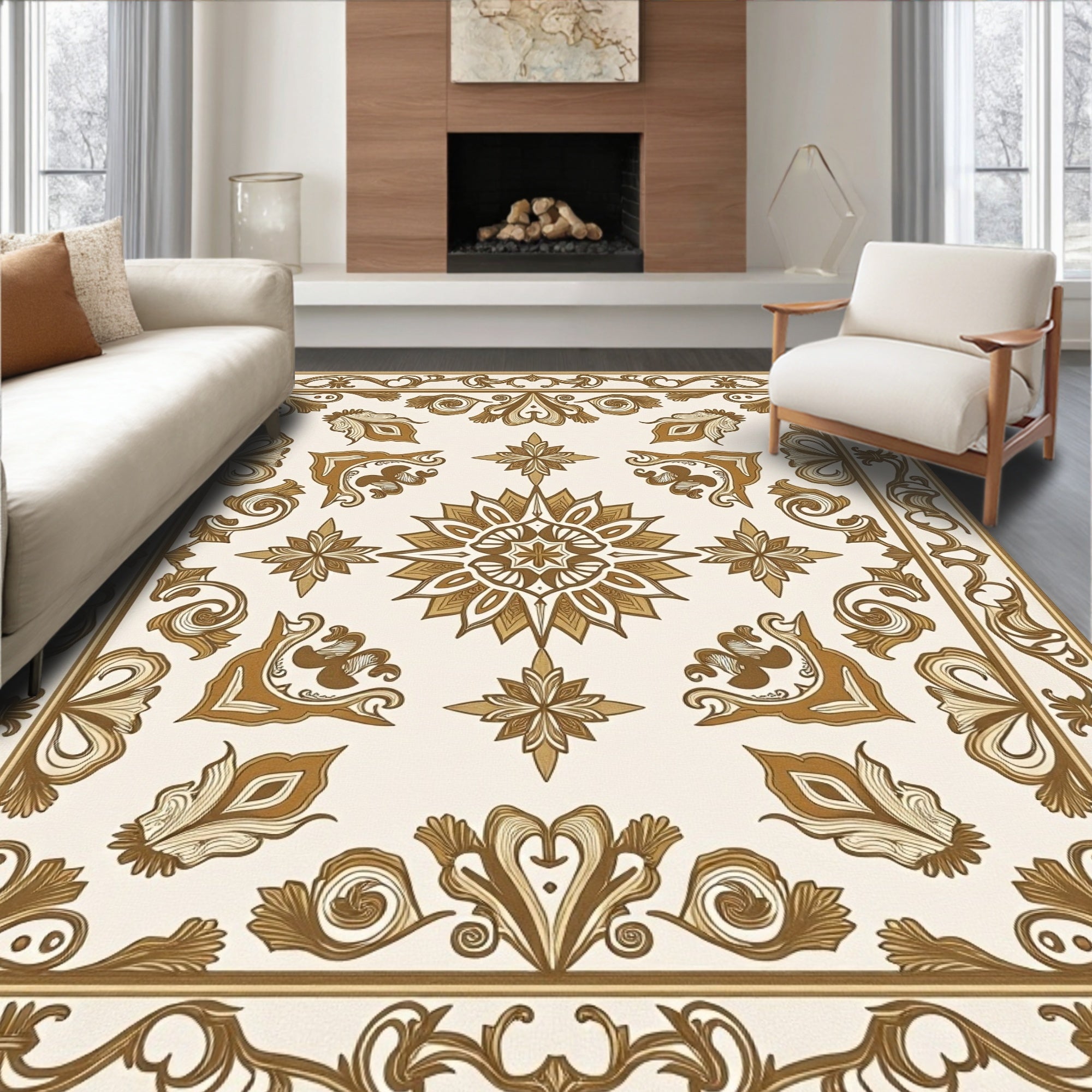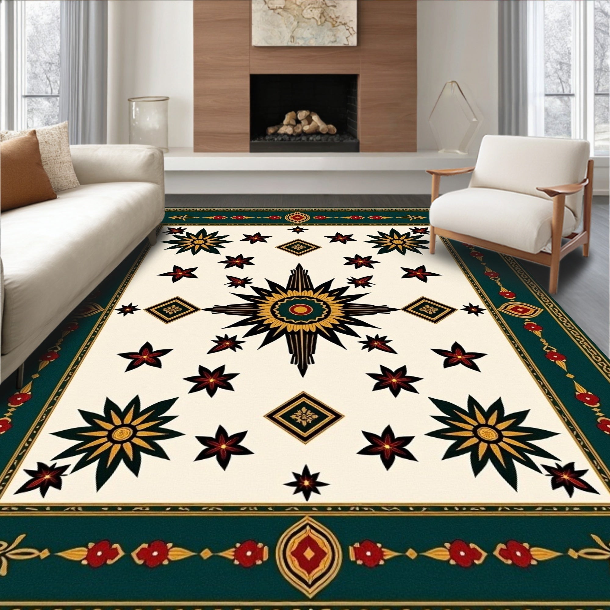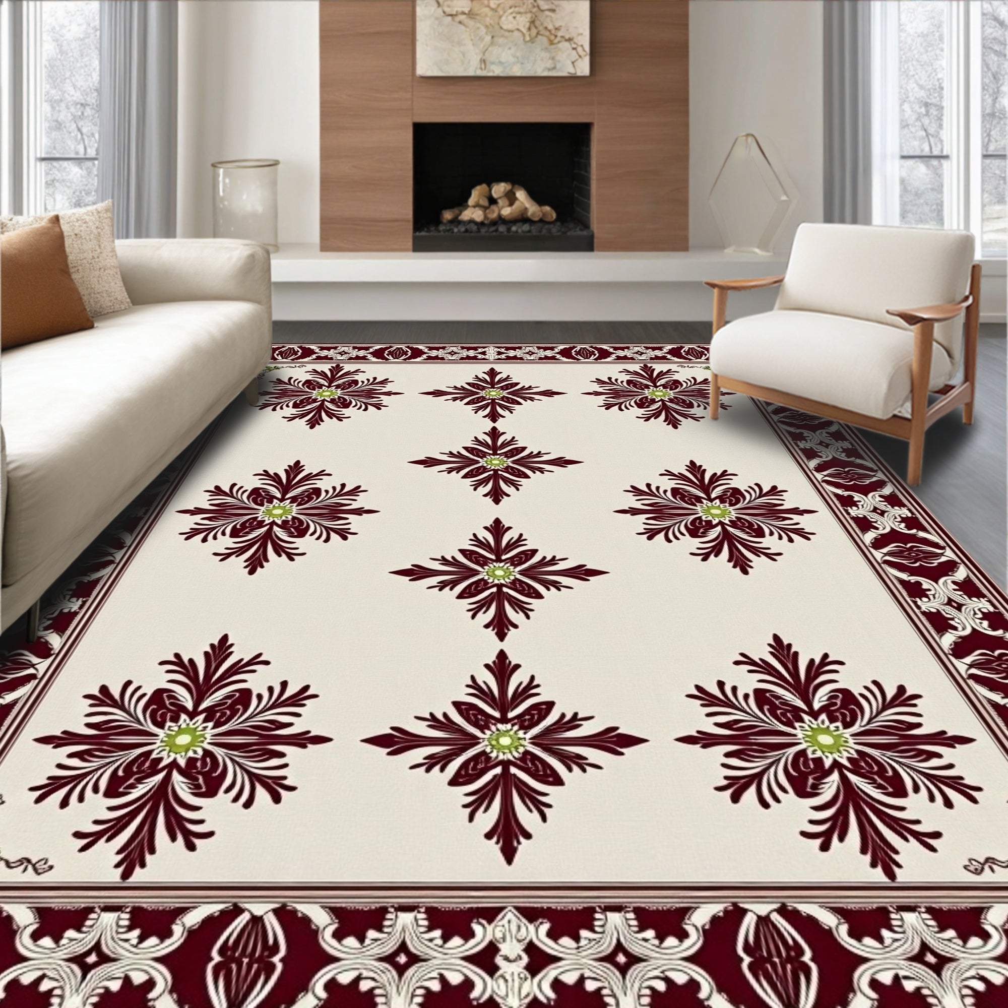 Distressed Arabesque Scroll Design Anti Slip(Green)
